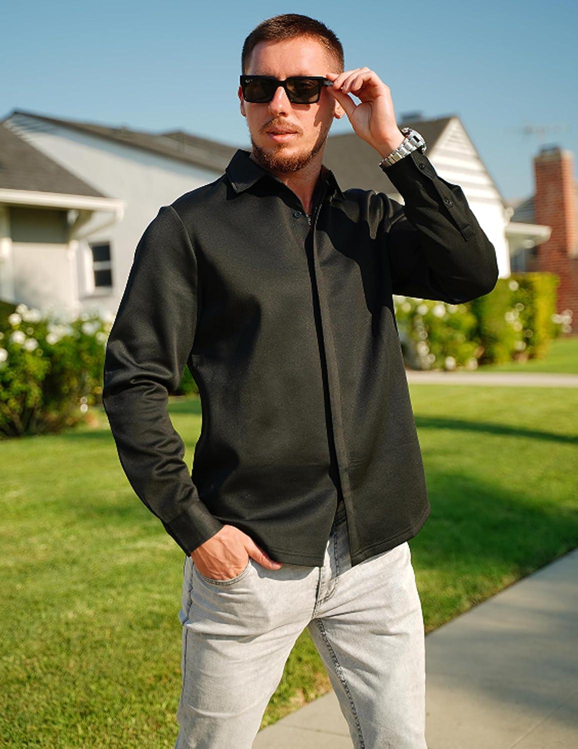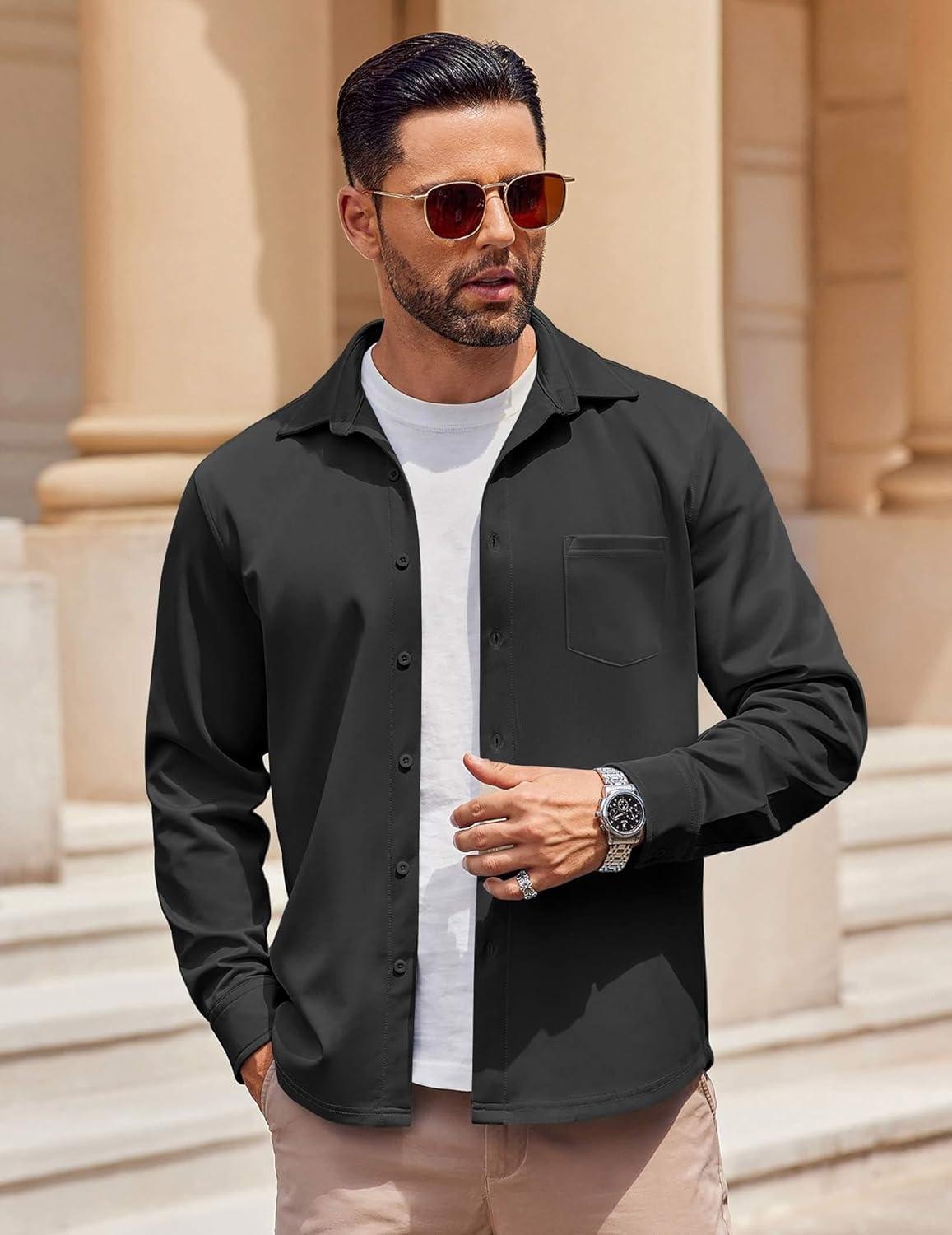 COOFANDY Men’s Casual Shirt Jacket Long Sleeve Button Down Overshirt Lightweight Shacket with Pockets(Black)