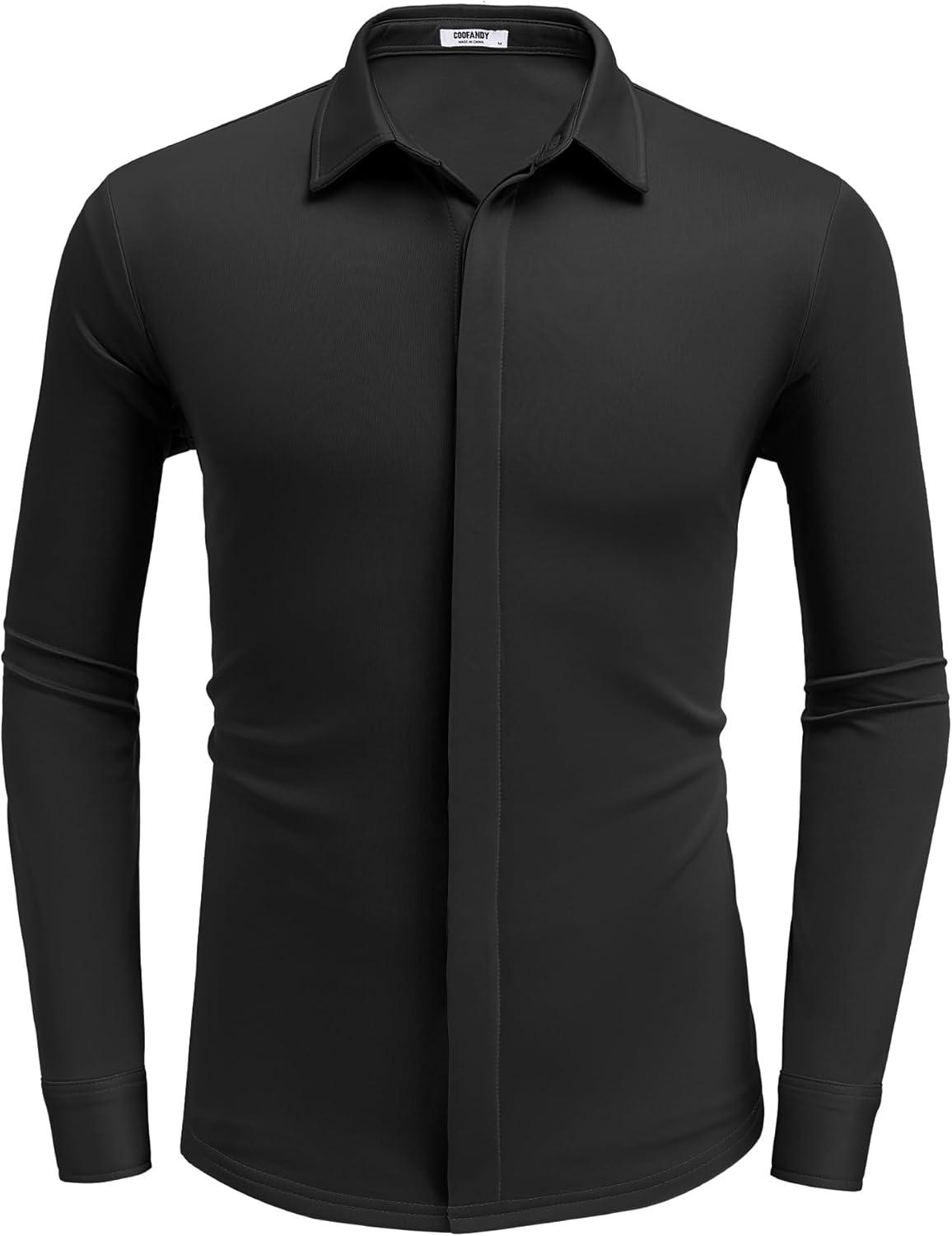 COOFANDY Mens’s Long Sleeve Button Up Shirts Athletic Fitted Dress Shirts Silm Fit(01-black)