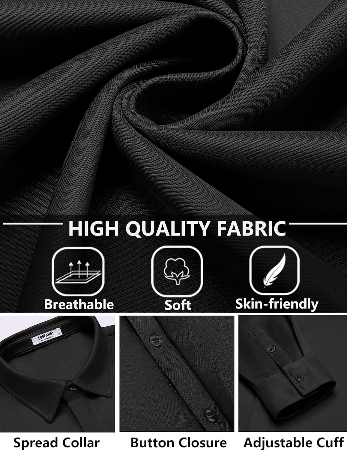 COOFANDY Mens Long Sleeve Wrinkle Free Shirts Casual Button Down Shirt Stretch Dress Shirt(Black)