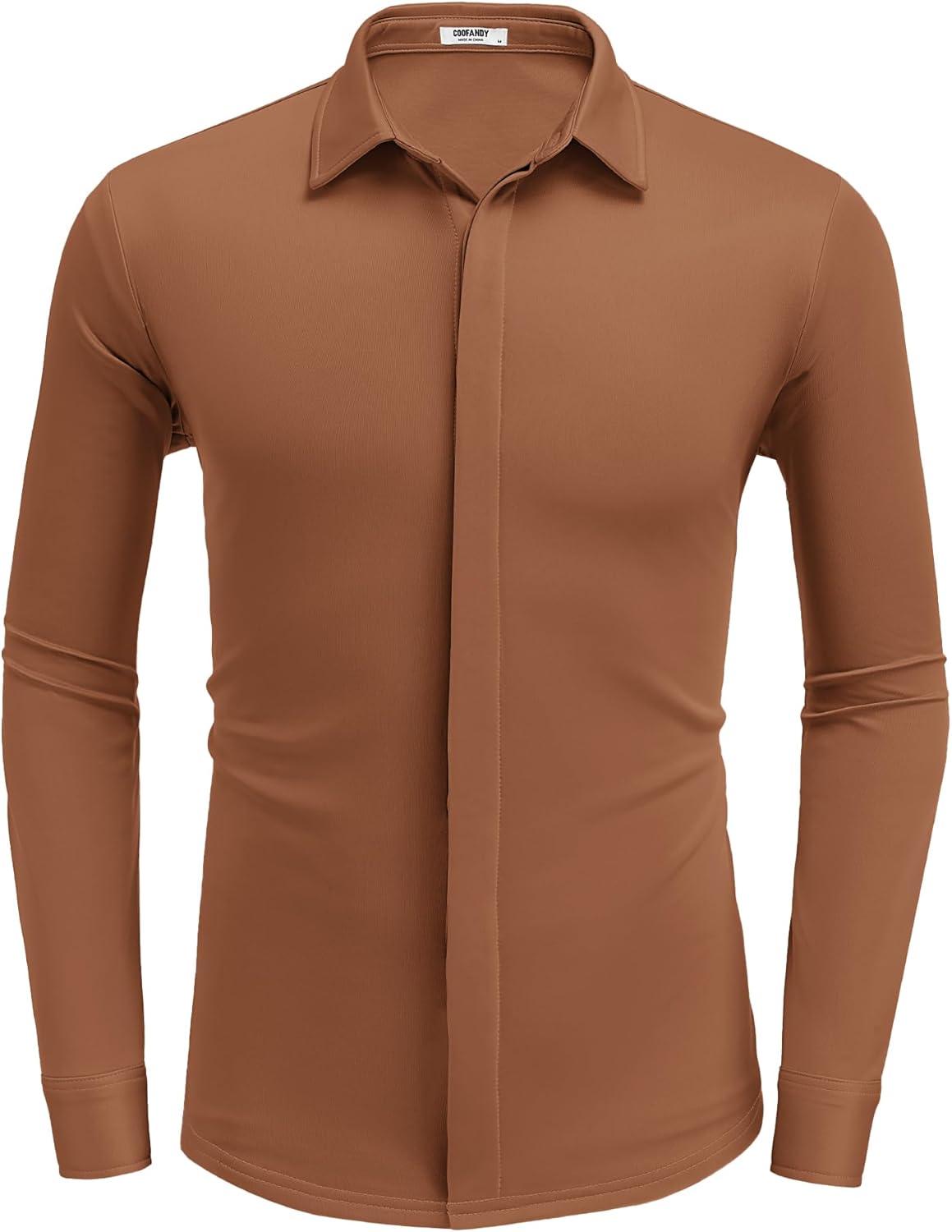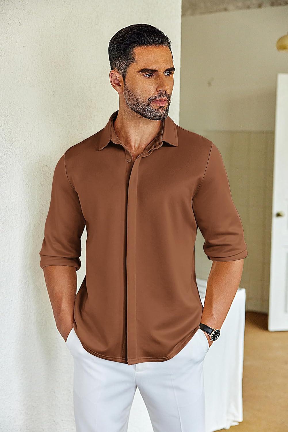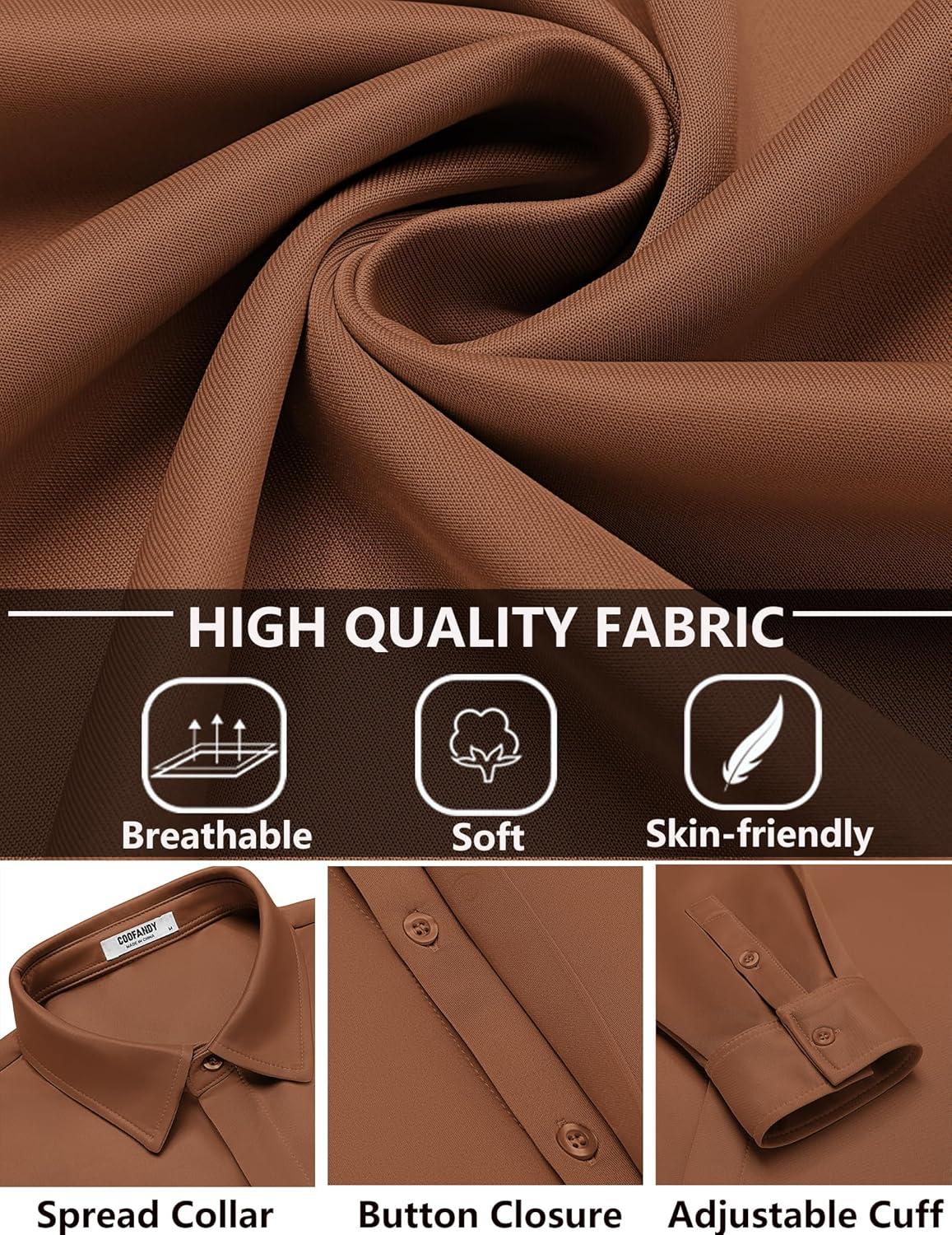 COOFANDY Mens Long Sleeve Wrinkle Free Shirts Casual Button Down Shirt Stretch Dress Shirt(Brown)