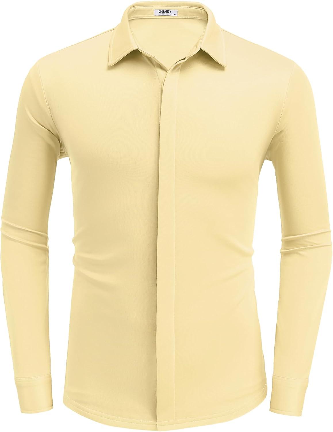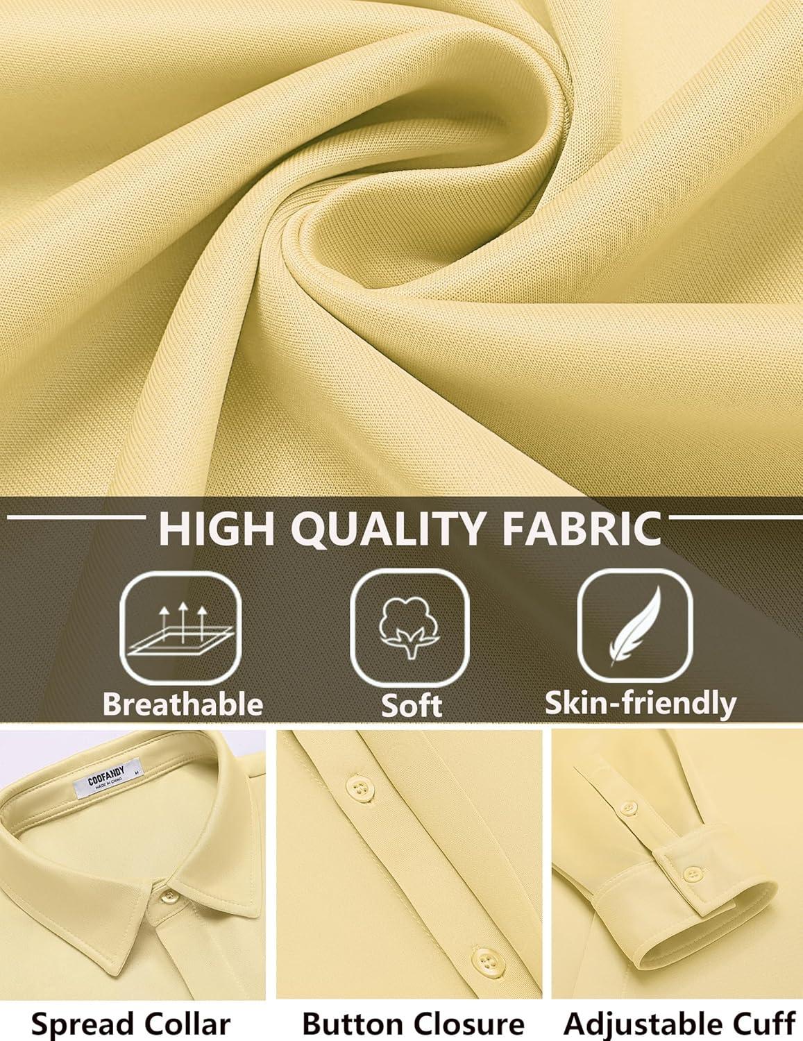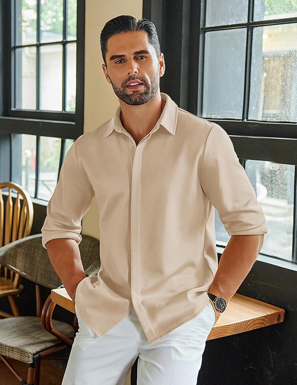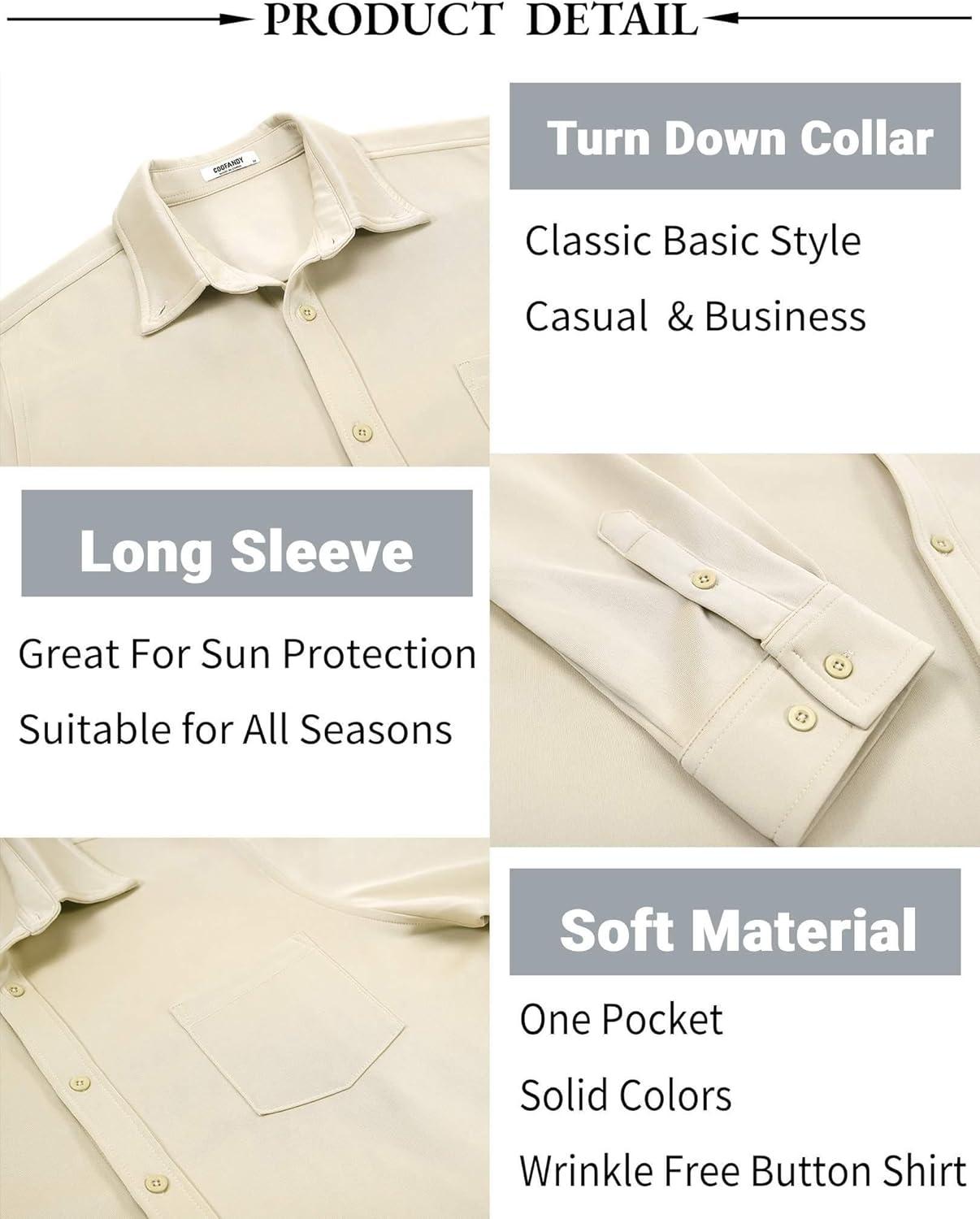 COOFANDY Mens Long Sleeve Wrinkle Free Shirts Casual Button Down Shirt Stretch Dress Shirt(Light Khaki)
