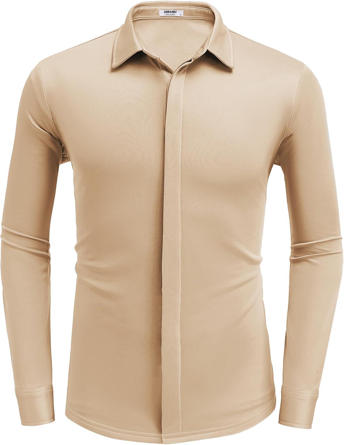 COOFANDY Mens’s Long Sleeve Button Up Shirts Athletic Fitted Dress Shirts Silm Fit(Khaki)