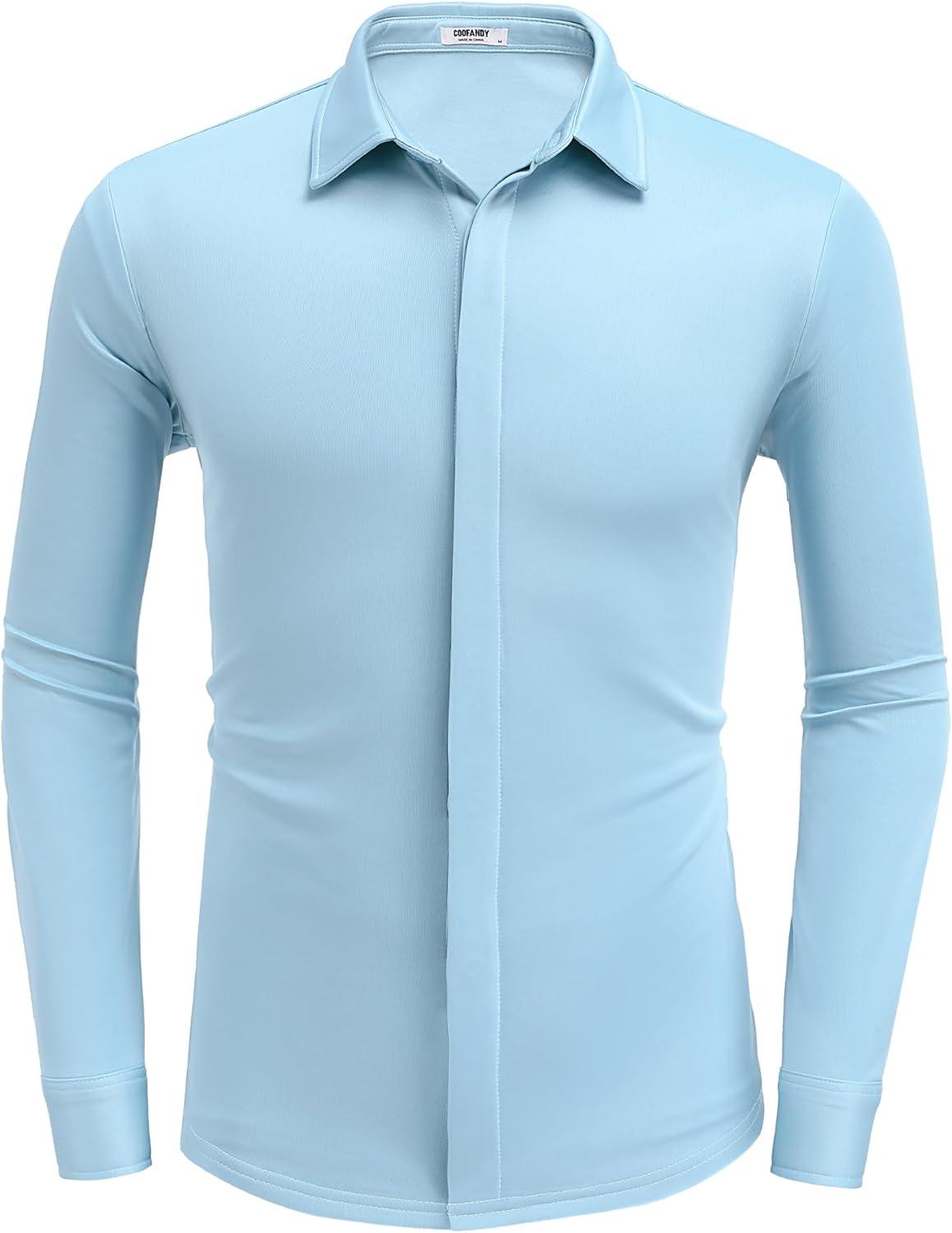 COOFANDY Mens’s Long Sleeve Button Up Shirts Athletic Fitted Dress Shirts Silm Fit(Light Blue)