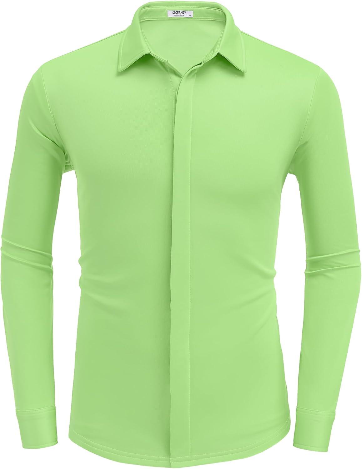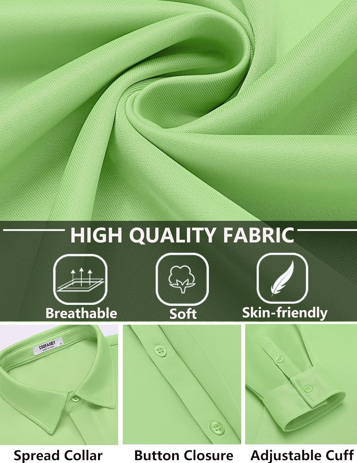 COOFANDY Mens Long Sleeve Wrinkle Free Shirts Casual Button Down Shirt Stretch Dress Shirt(Light Green)