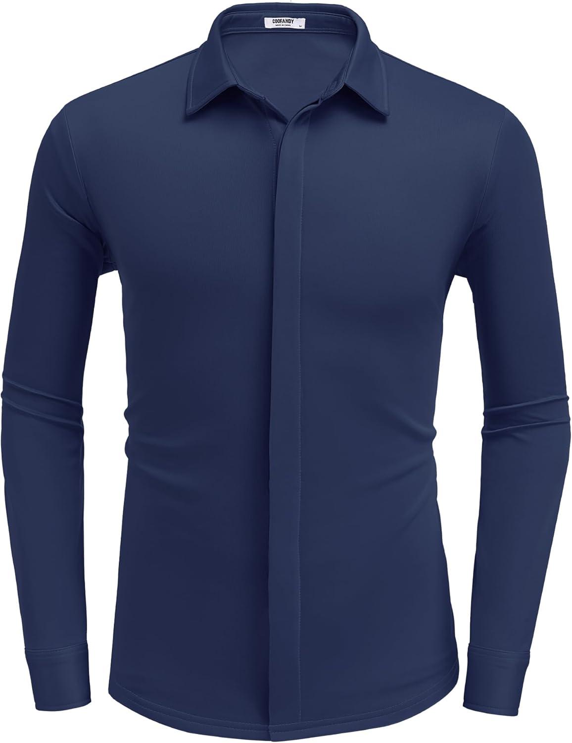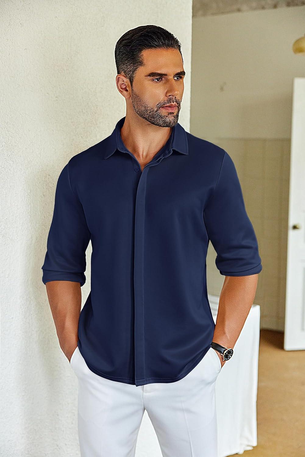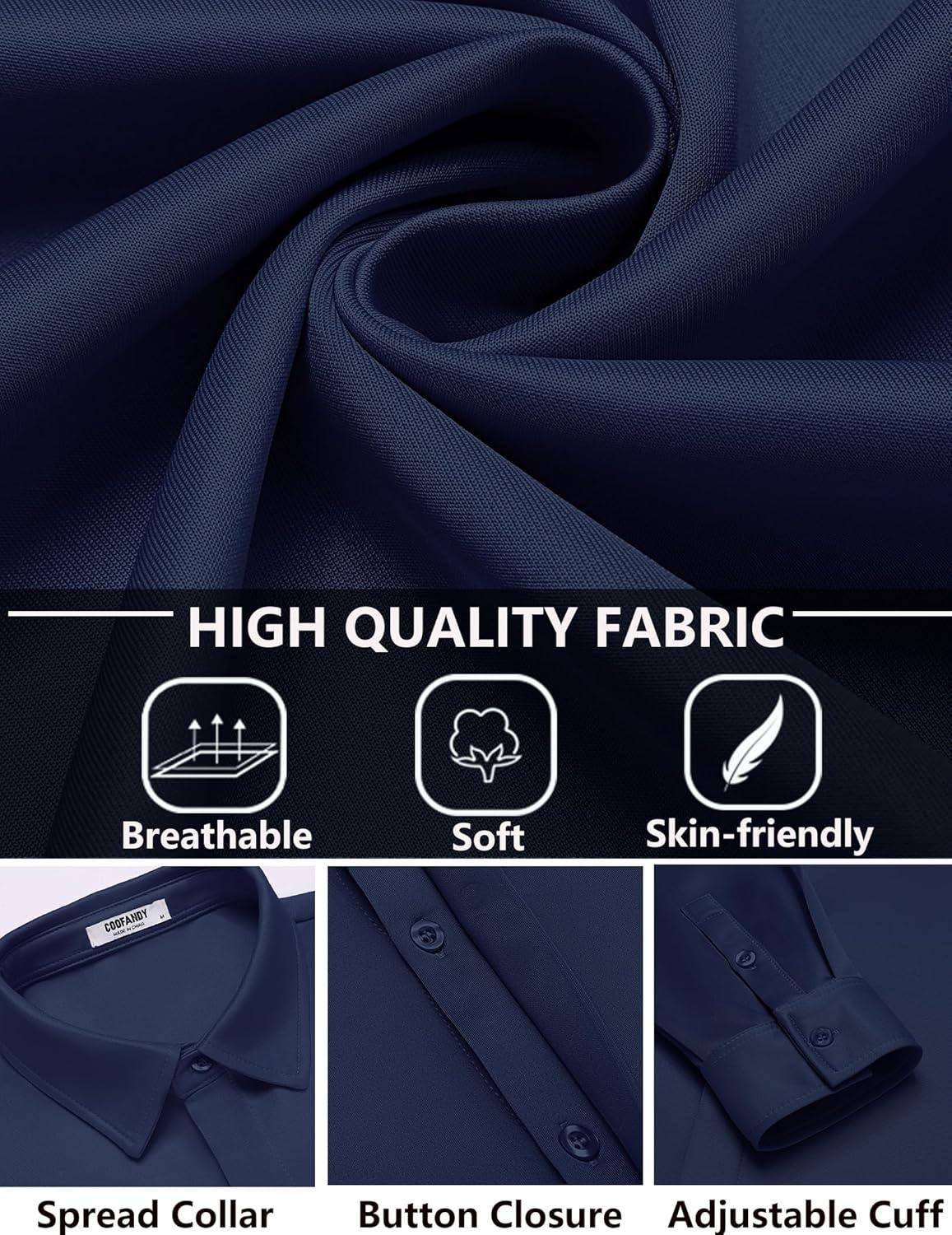 COOFANDY Mens Long Sleeve Wrinkle Free Shirts Casual Button Down Shirt Stretch Dress Shirt(Navy Blue)