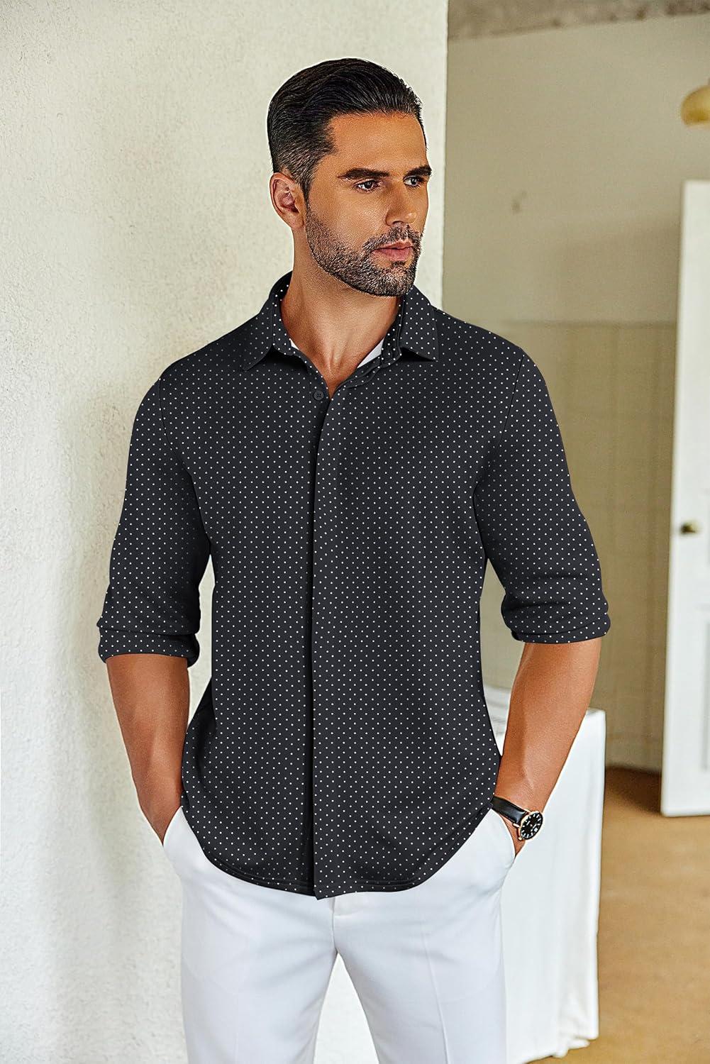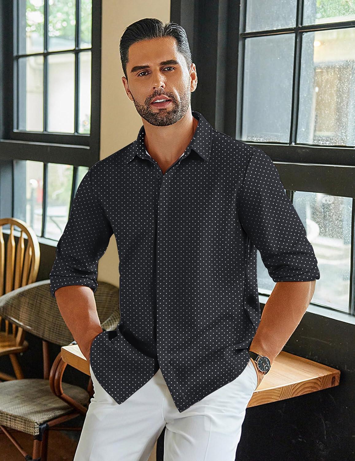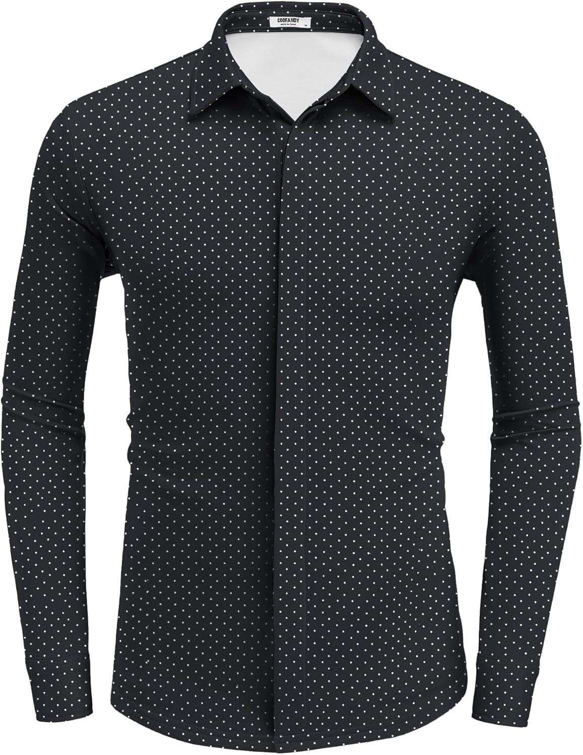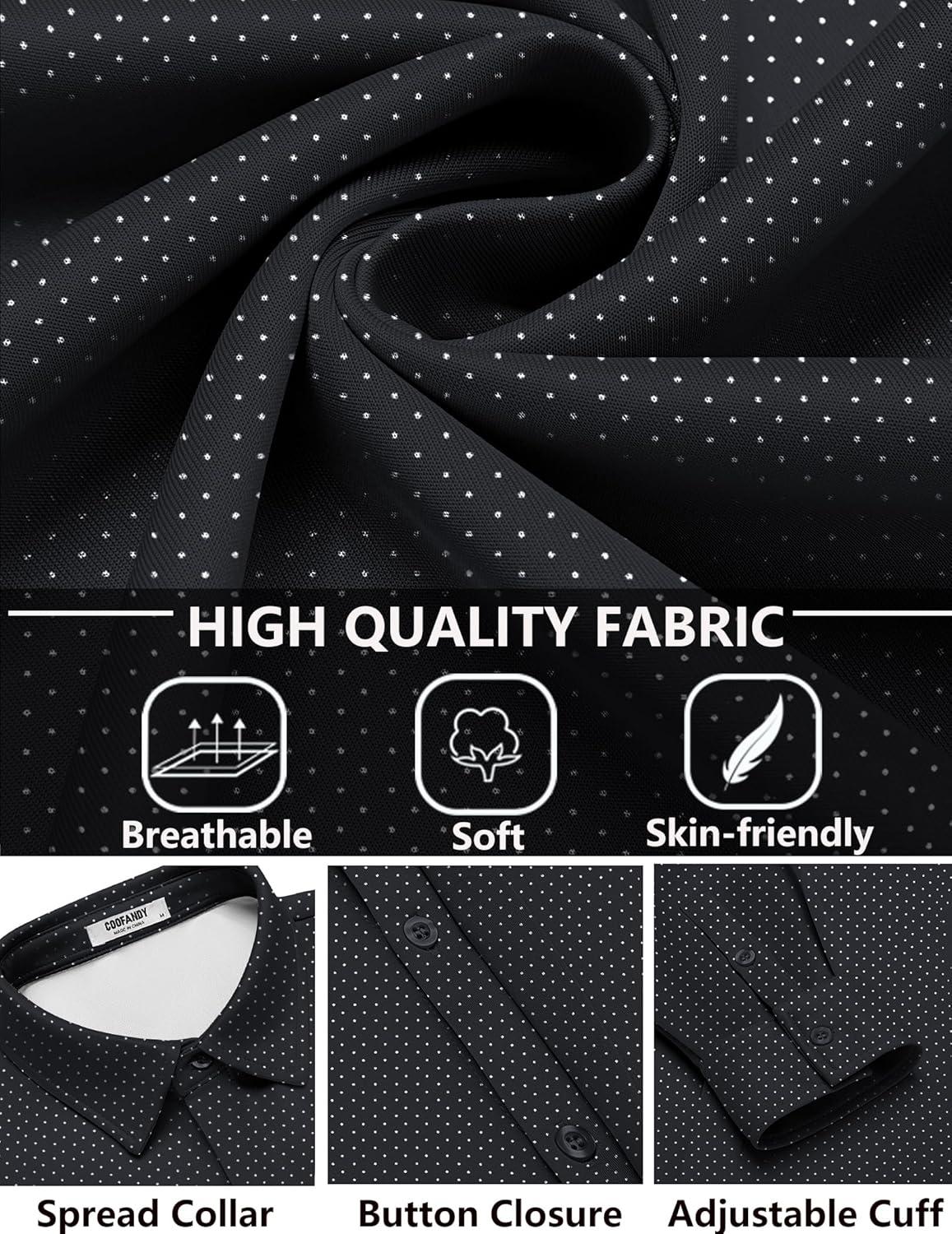 COOFANDY Mens Long Sleeve Wrinkle Free Shirts Casual Button Down Shirt Stretch Dress Shirt(White Spots Black)