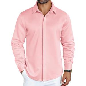 COOFANDY Mens Long Sleeve Wrinkle Free Shirts Casual Button Down Shirt Stretch Dress Shirt(Pink)