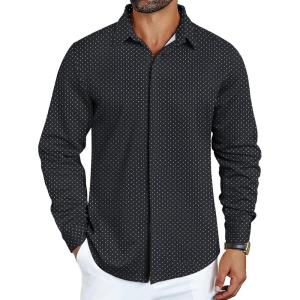 COOFANDY Men’s Long Sleeve Button Down Shirts Casual Untucked Dress Shirt Beach Wedding Shirts(Printed-black Dots)