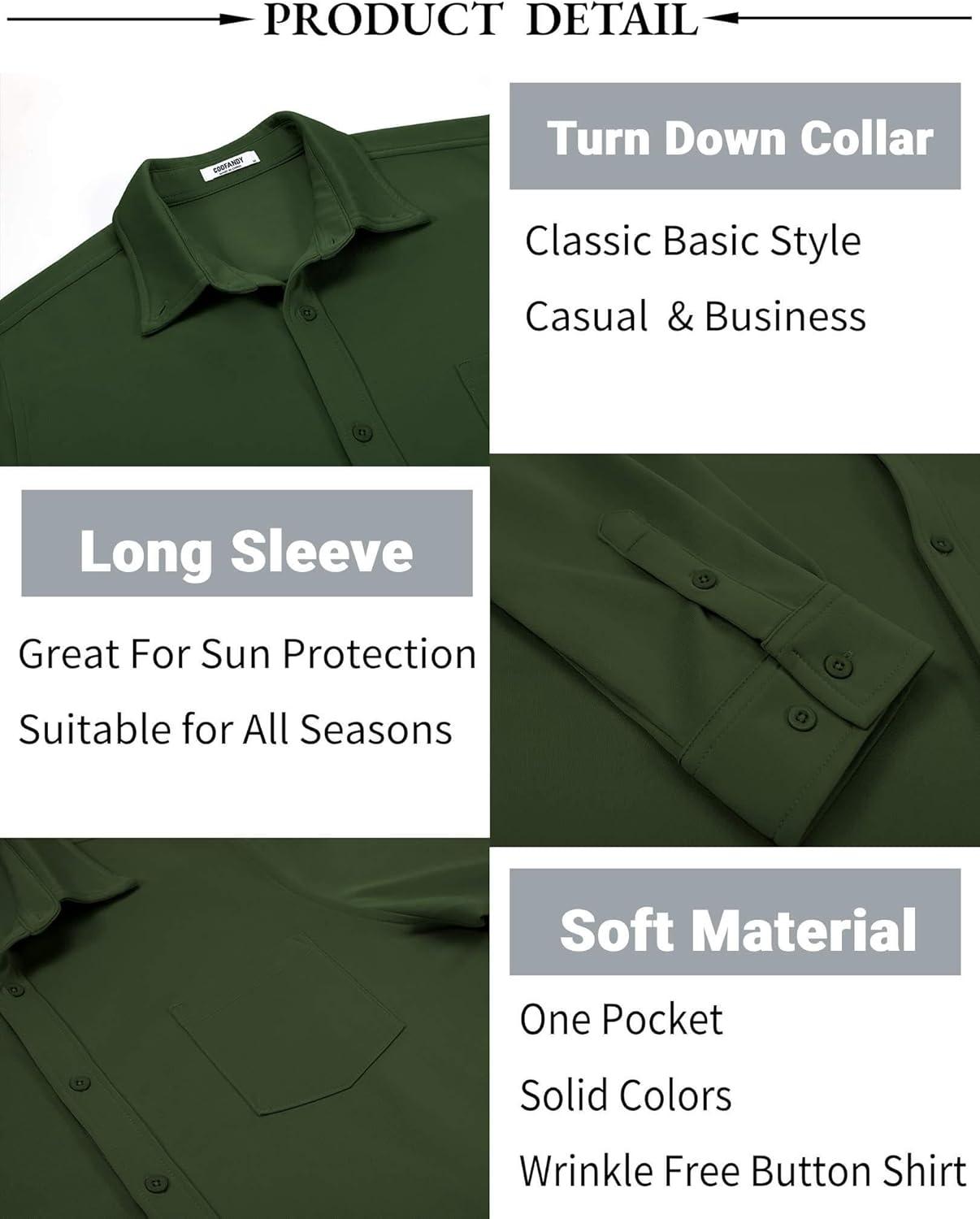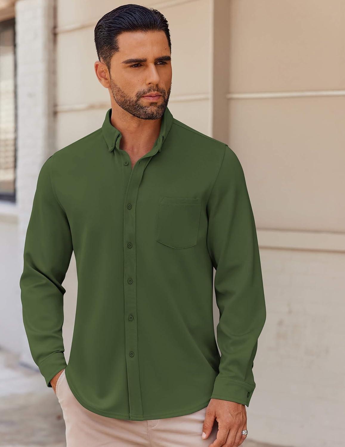 COOFANDY Men’s Long Sleeve Wrinkle Free Shirt Casual Button Down Shirts Stretch Dress Shirt with Pocket(Army Green)