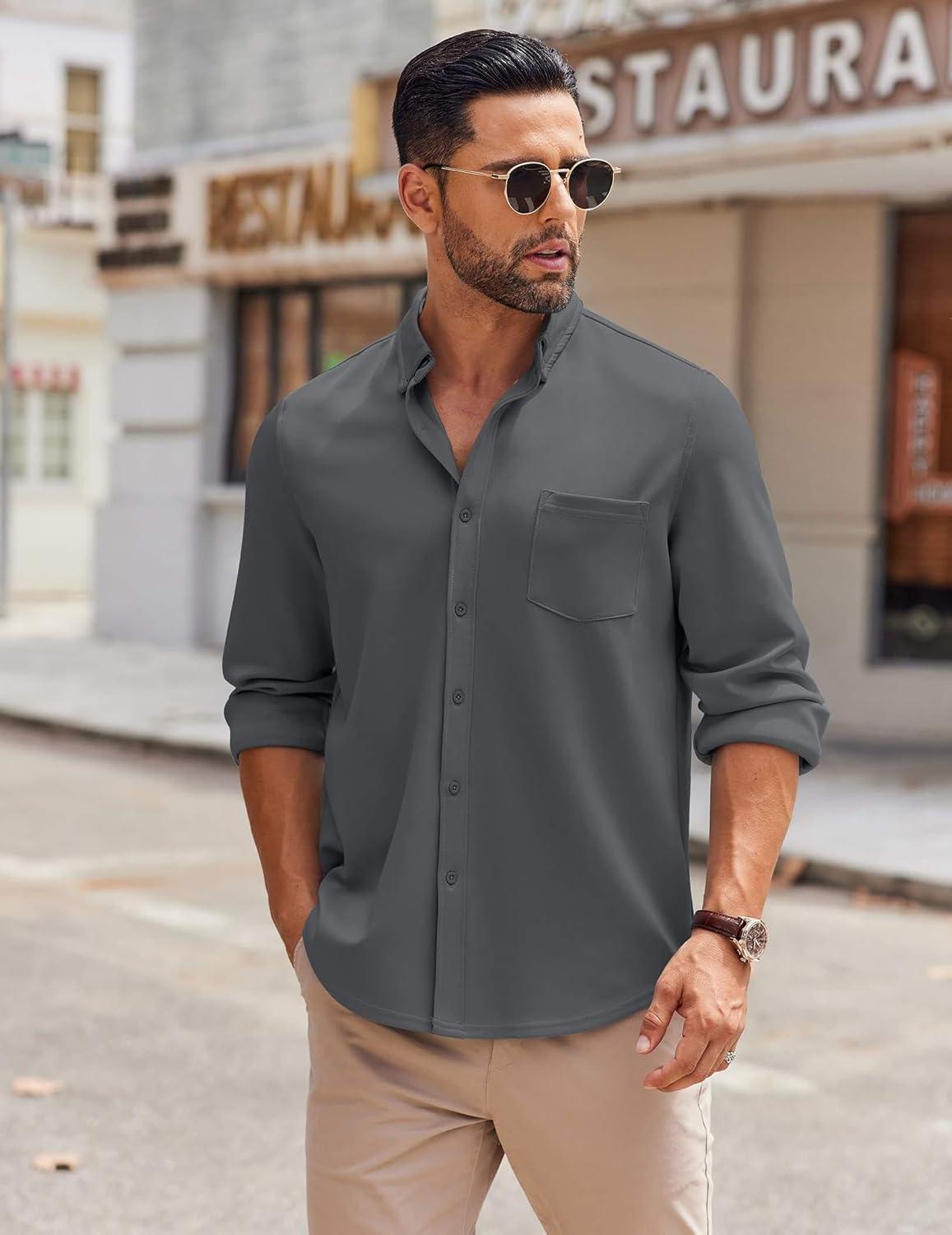 COOFANDY Men’s Long Sleeve Wrinkle Free Shirt Casual Button Down Shirts Stretch Dress Shirt with Pocket(Dark Grey)