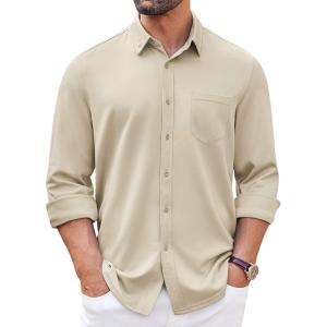 COOFANDY Men’s Long Sleeve Button Down Shirts Casual Untucked Dress Shirt Beach Wedding Shirts(Khaki)