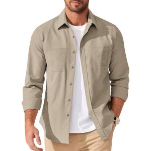 COOFANDY Mens Casual Button Down Work Shirts Untucked Long Sleeve Woven Shirt with Pockets(Light Brown)