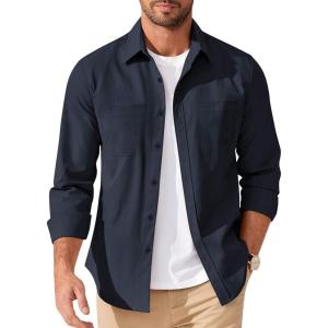 COOFANDY Mens Casual Button Down Work Shirts Untucked Long Sleeve Woven Shirt with Pockets(Navy Blue)