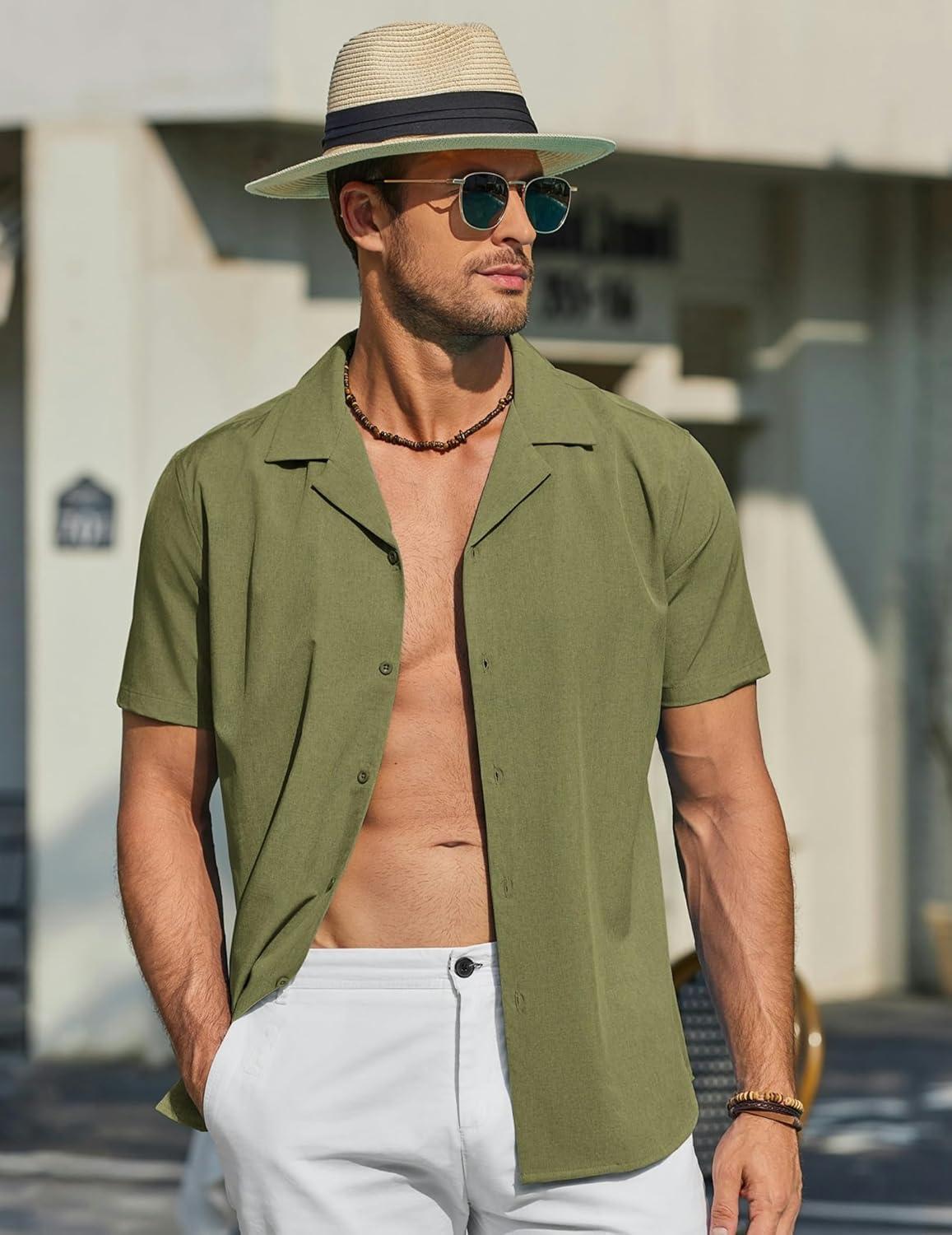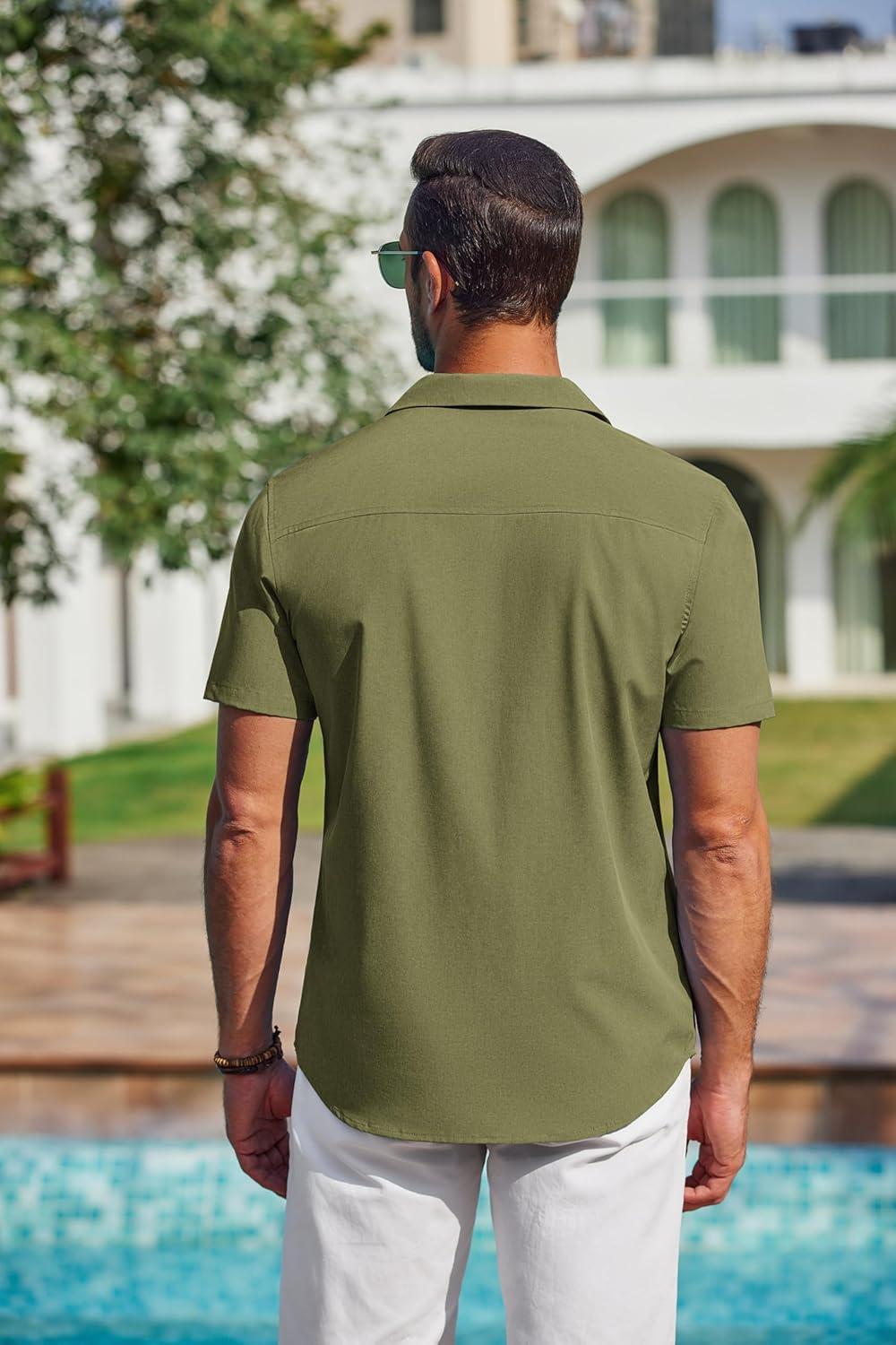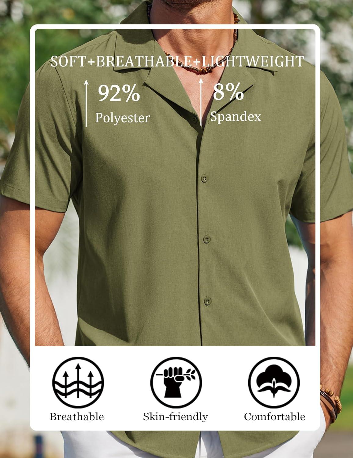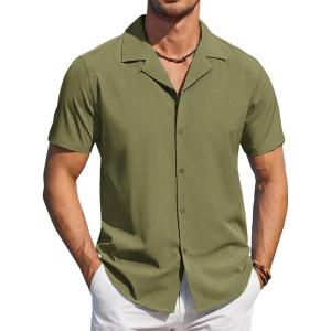 COOFANDY Mens Short Sleeve Shirts Casual Button Down Shirts Cuban Textured Summer Beach Shirts(Army Green)