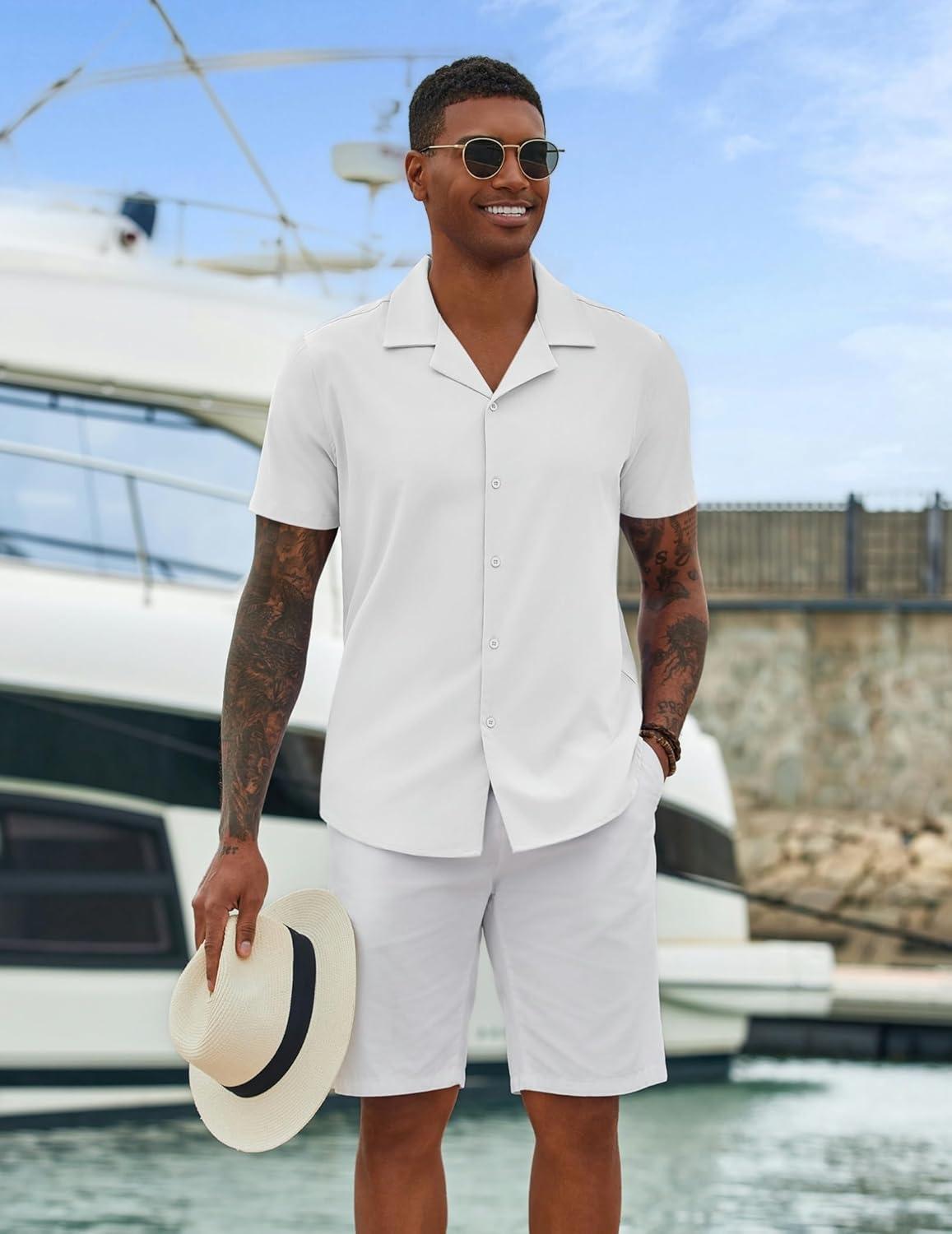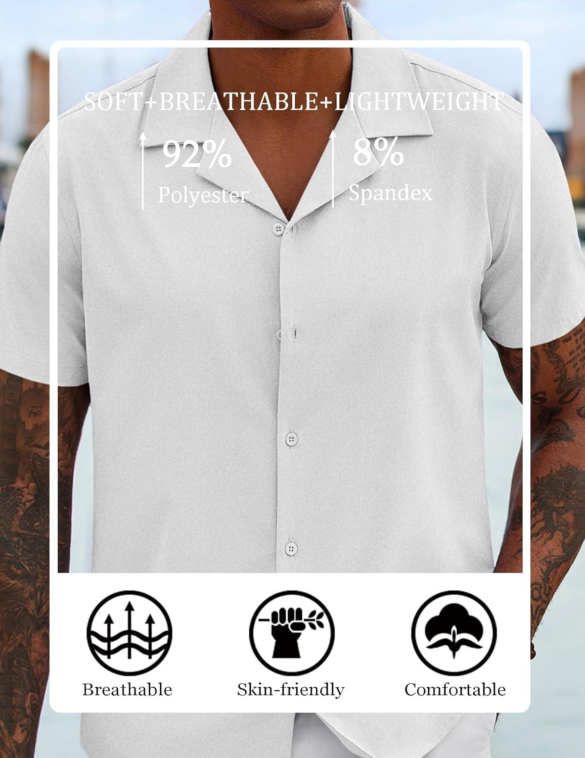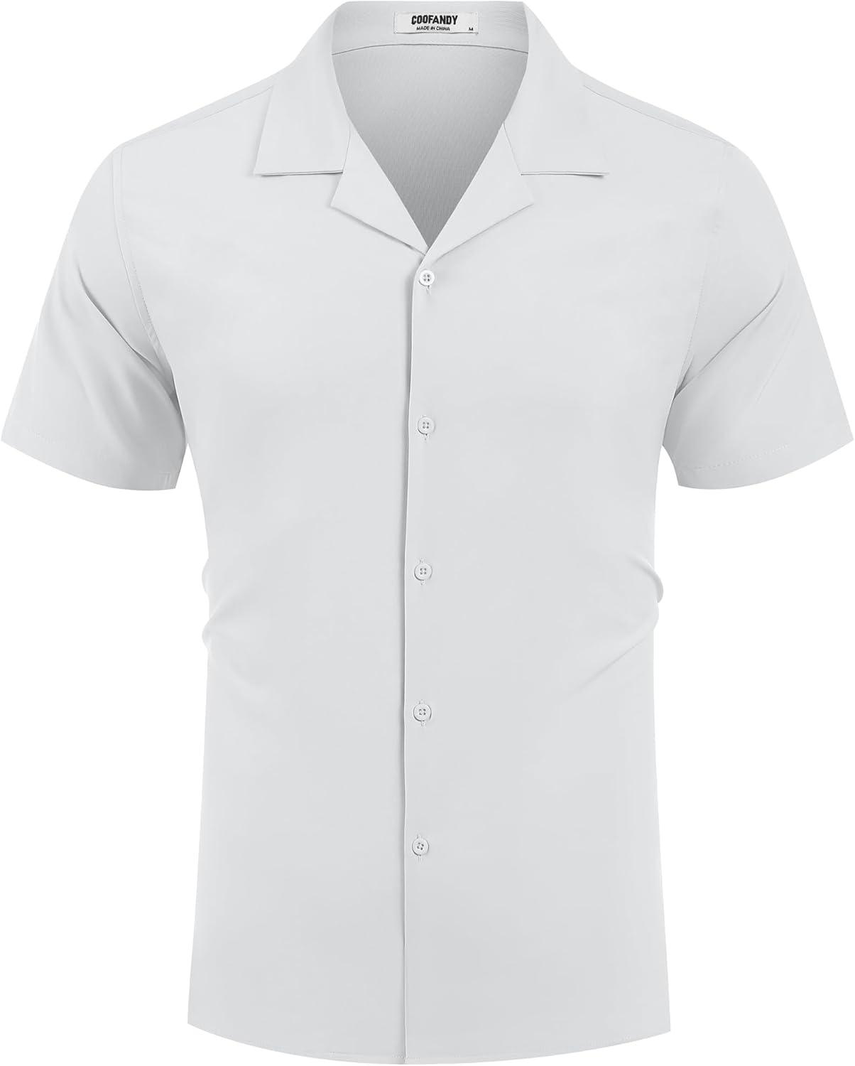 COOFANDY Mens Short Sleeve Shirts Casual Button Down Shirts Cuban Textured Summer Beach Shirts(White)