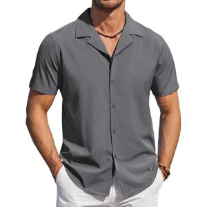 COOFANDY Mens Short Sleeve Shirts Casual Button Down Shirts Cuban Textured Summer Beach Shirts(Grey)
