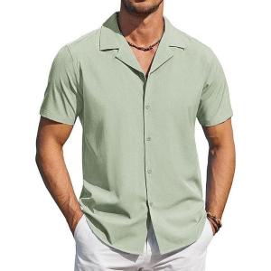 COOFANDY Mens Short Sleeve Shirts Casual Button Down Shirts Cuban Textured Summer Beach Shirts(Light Green)