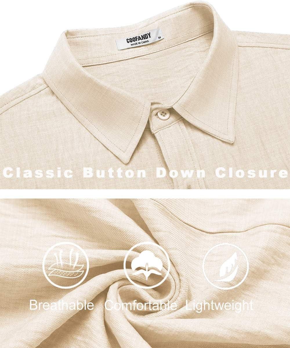 COOFANDY Men’s Casual Button Down Shirts Short Sleeve Textured Summer Beach Shirt(Light Khaki)