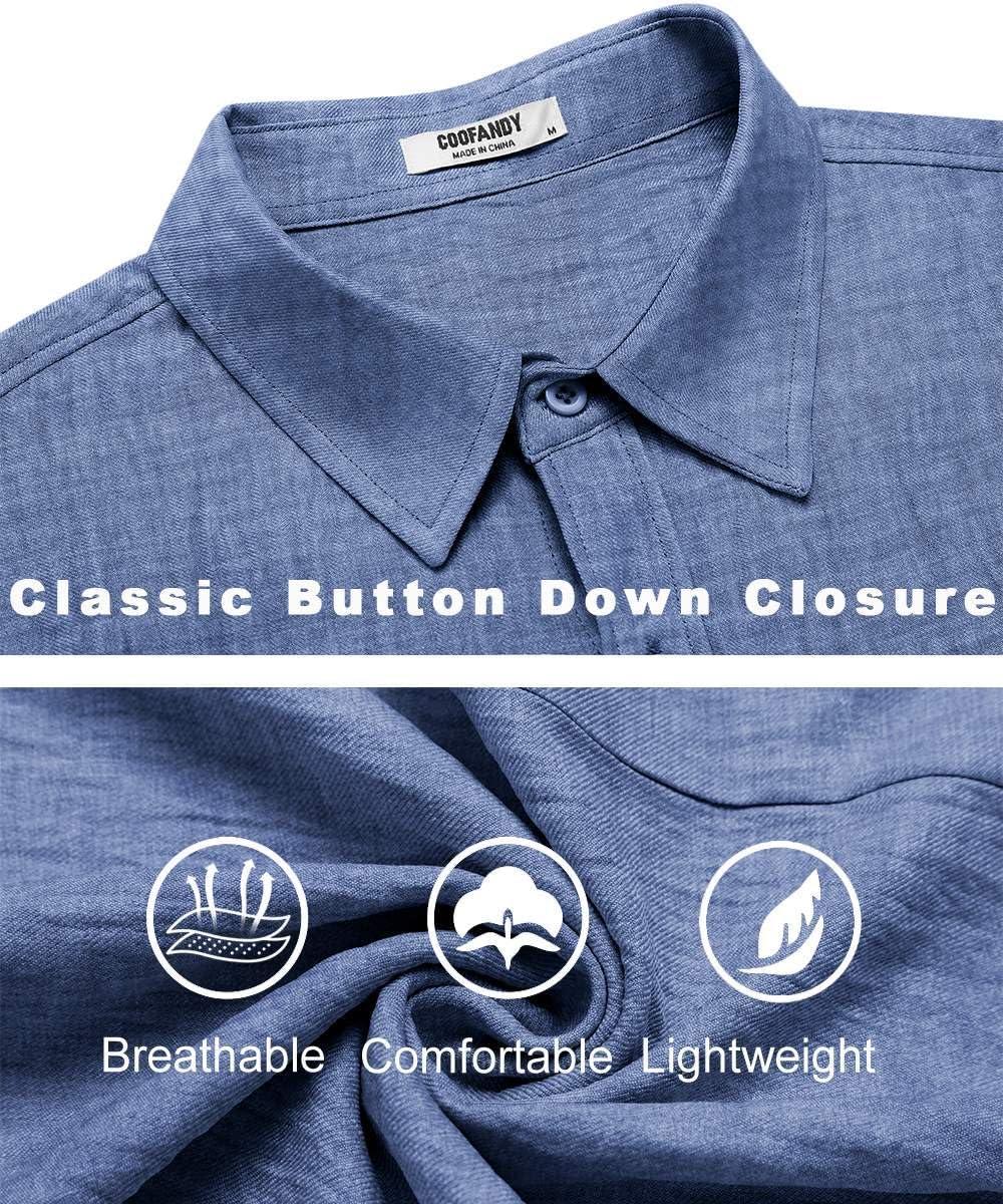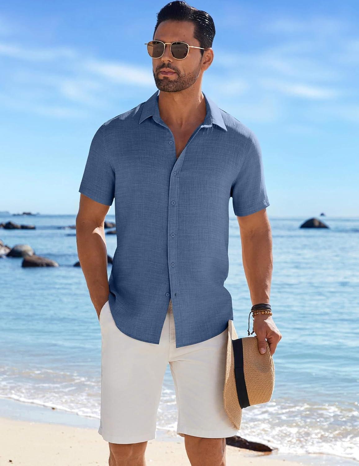 COOFANDY Men’s Casual Button Down Shirts Short Sleeve Textured Summer Beach Shirt(Denim Blue)