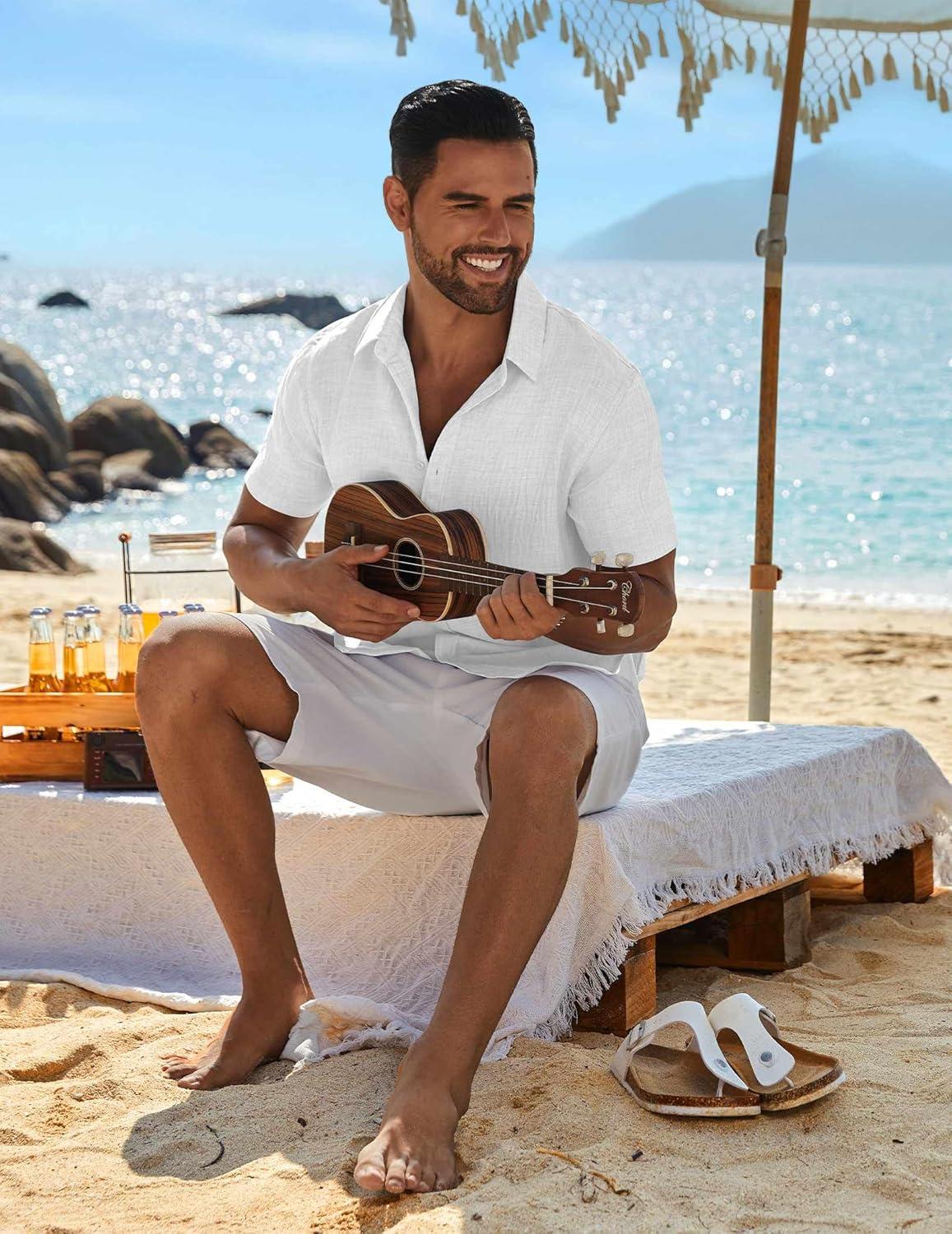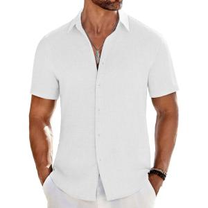 COOFANDY Men’s Casual Button Down Shirts Short Sleeve Textured Summer Beach Shirt(White)