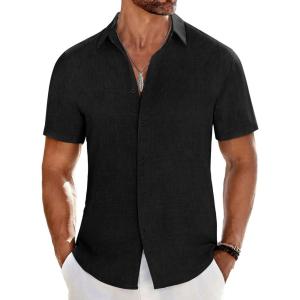 COOFANDY Men’s Casual Button Down Shirts Short Sleeve Textured Summer Beach Shirt(Black)