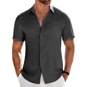 COOFANDY Men’s Casual Button Down Shirts Short Sleeve Textured Summer Beach Shirt(Dark Grey)