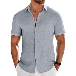 COOFANDY Men’s Casual Button Down Shirts Short Sleeve Textured Summer Beach Shirt(Light Grey)