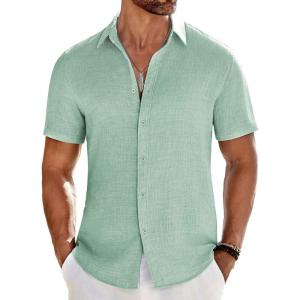 COOFANDY Men’s Casual Button Down Shirts Short Sleeve Textured Summer Beach Shirt(Mint Green)