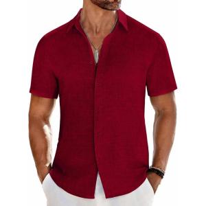COOFANDY Men’s Casual Button Down Shirts Short Sleeve Textured Summer Beach Shirt(Red)