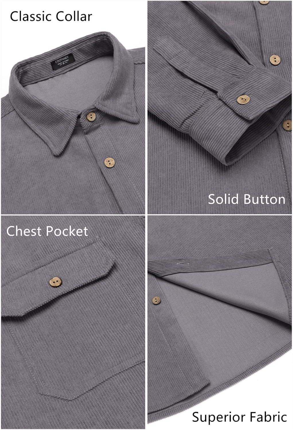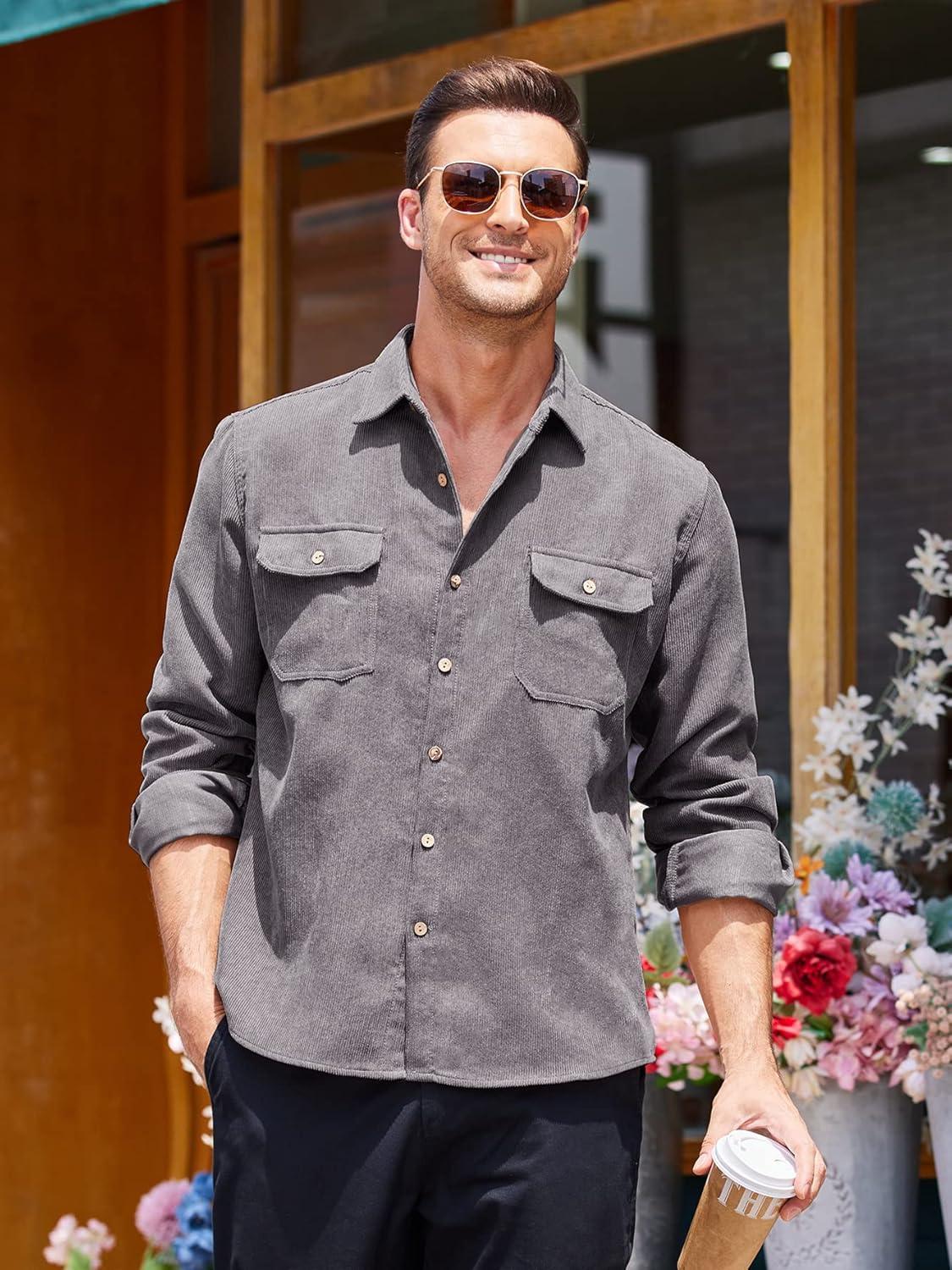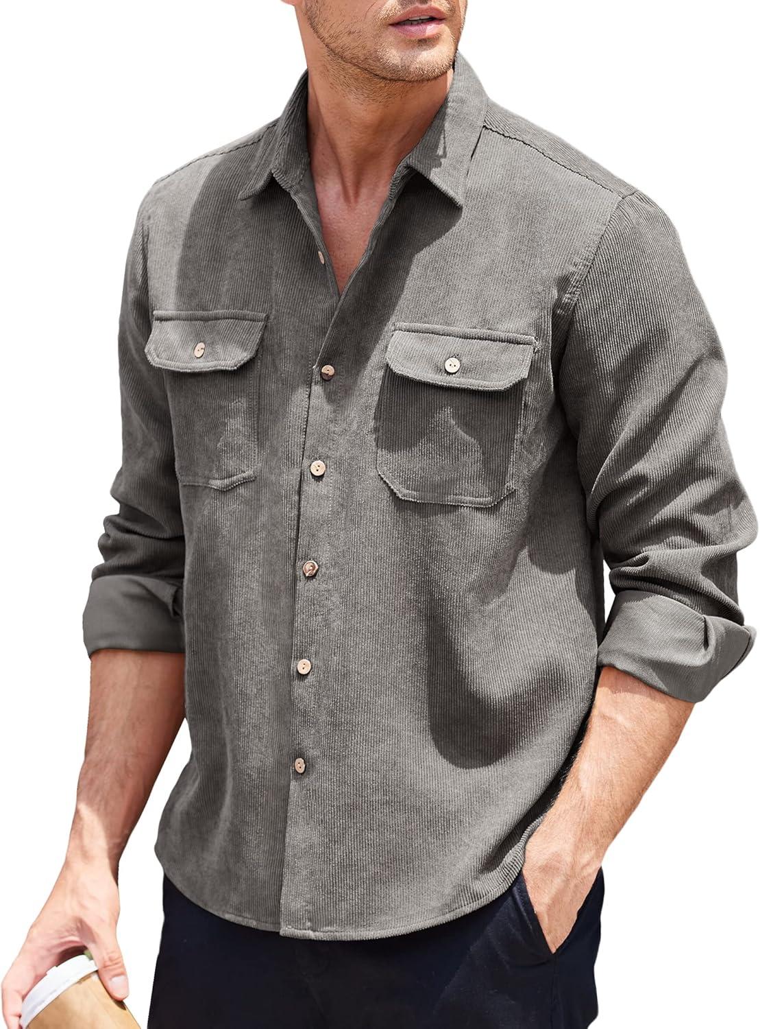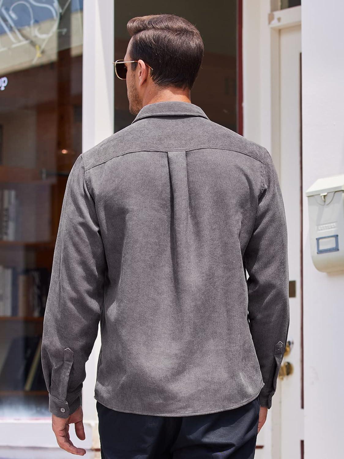 COOFANDY Men’s Corduroy Shirt Casual Button Down Shirt Jacket Lightweight Shacket(Grey)