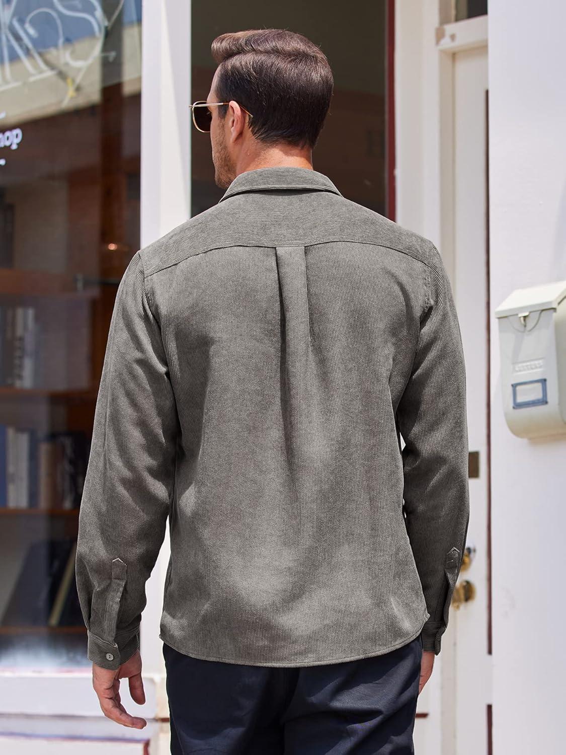 COOFANDY Men’s Corduroy Shirt Casual Shacket Long Sleeve Button Down Lightweight Jacket(Grey)