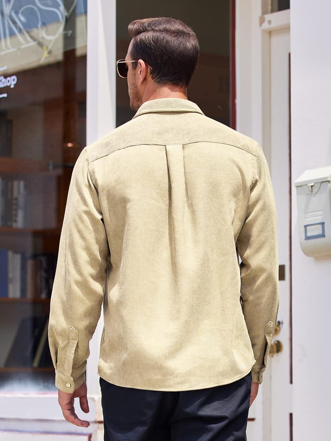 COOFANDY Men’s Corduroy Shirt Casual Shacket Long Sleeve Button Down Lightweight Jacket(Light Khaki)