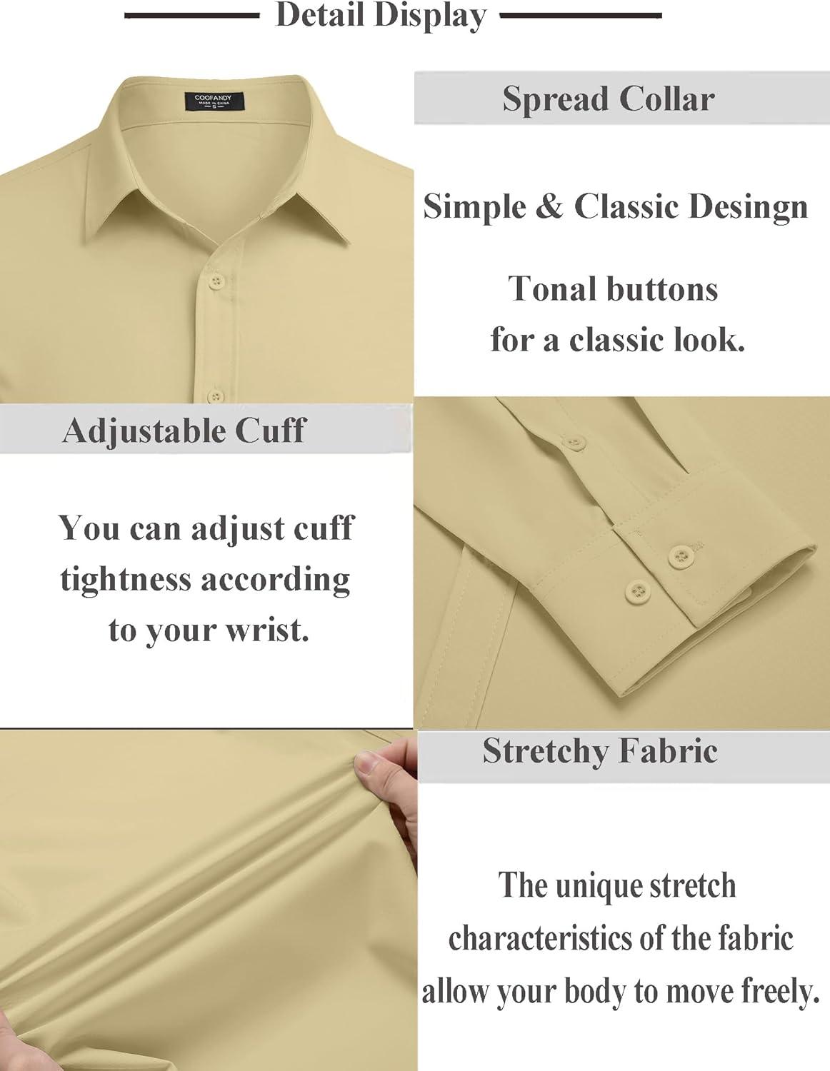 COOFANDY Men Long Sleeve Button Down Shirts Muscle Fit Dress Shirts Slim Fit Knit Shirts Camp Collar Shirts(Light Khaki)