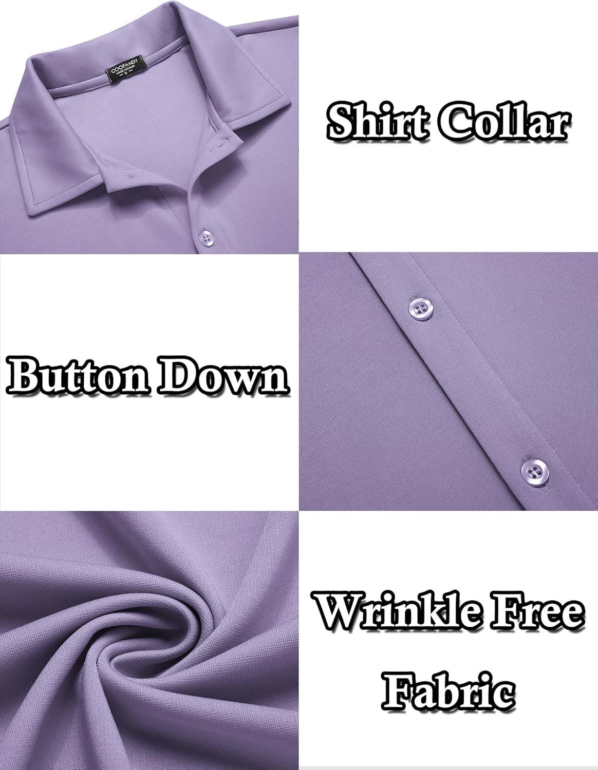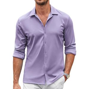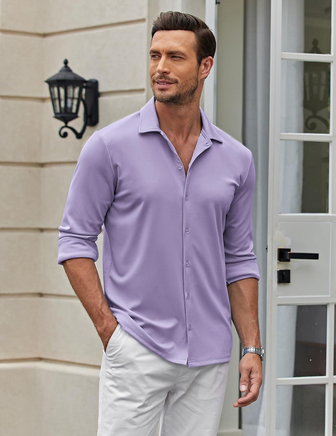COOFANDY Men Long Sleeve Button Down Shirts Muscle Fit Dress Shirts Slim Fit Knit Shirts Camp Collar Shirts(Lilac)
