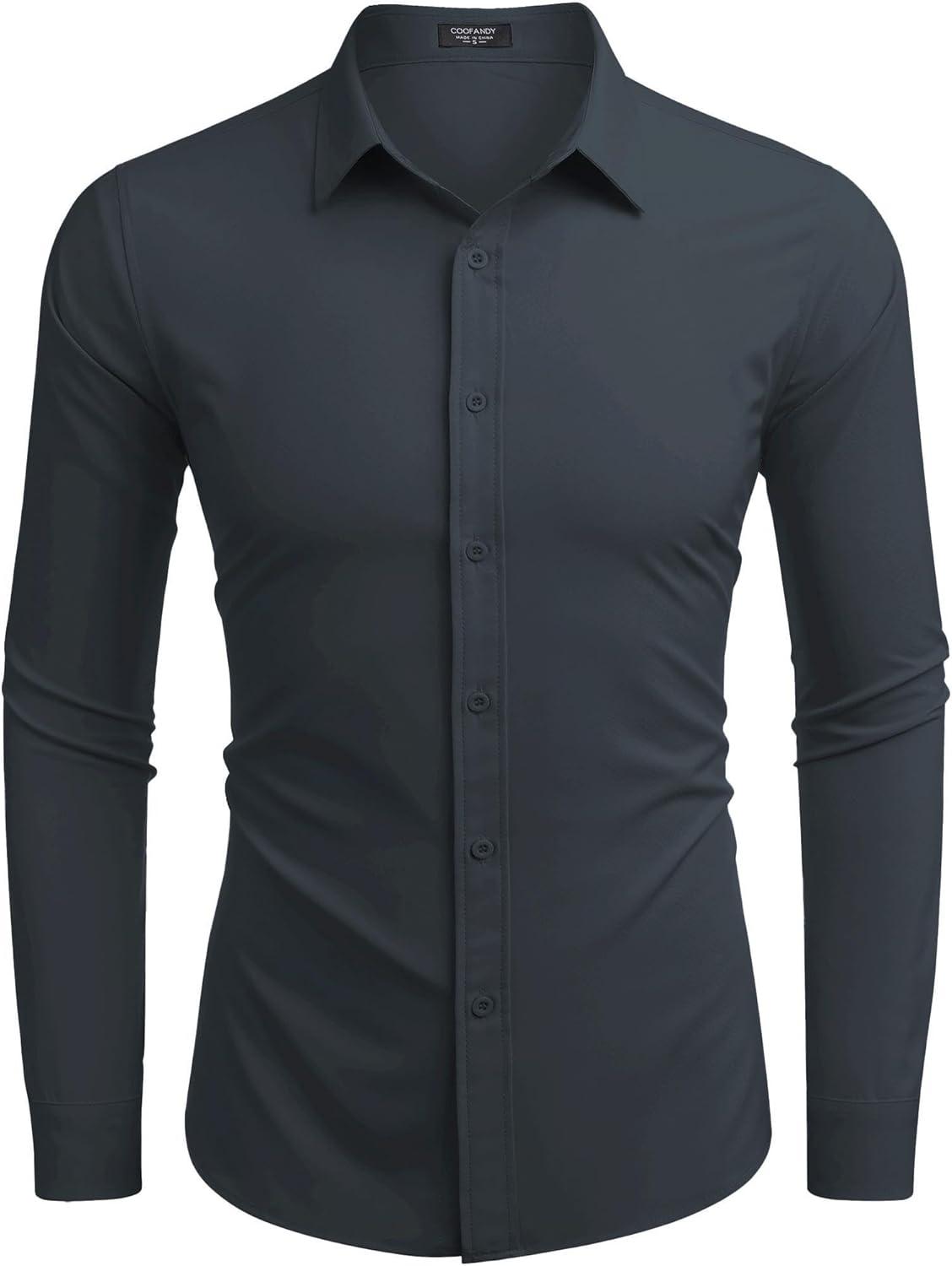 COOFANDY Men Long Sleeve Button Down Shirts Muscle Fit Dress Shirts Slim Fit Knit Shirts Camp Collar Shirts(Light Grey)