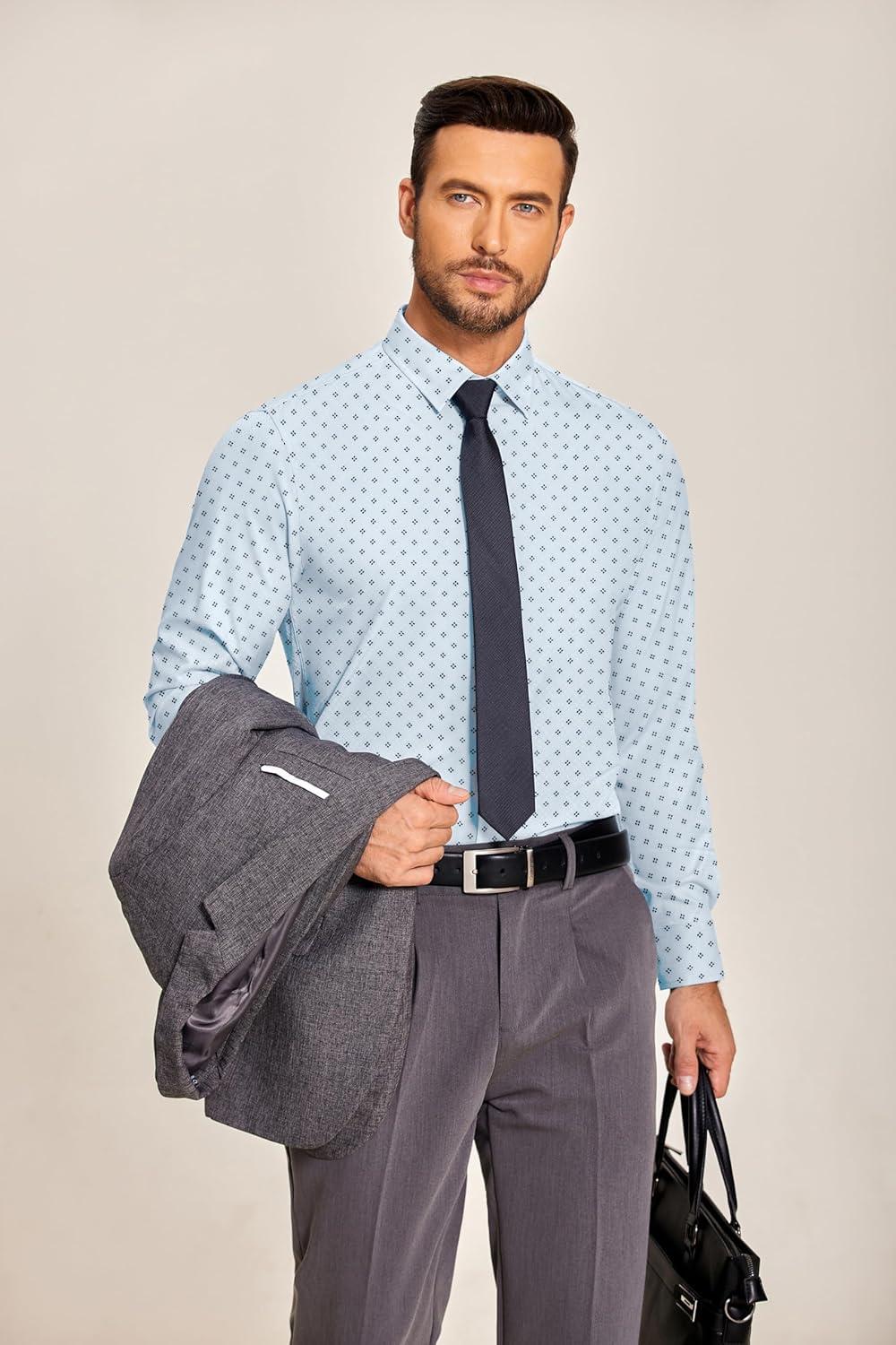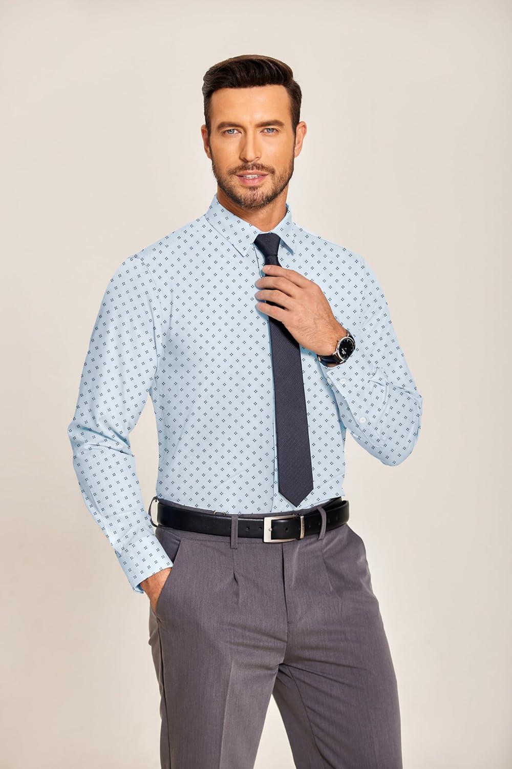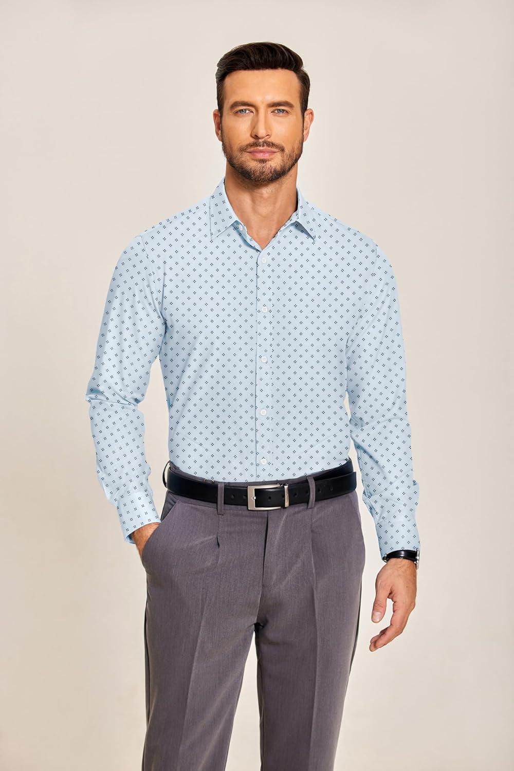 COOFANDY Men Long Sleeve Button Down Shirts Muscle Fit Dress Shirts Slim Fit Knit Shirts Camp Collar Shirts(Printed-geometric Patterns)