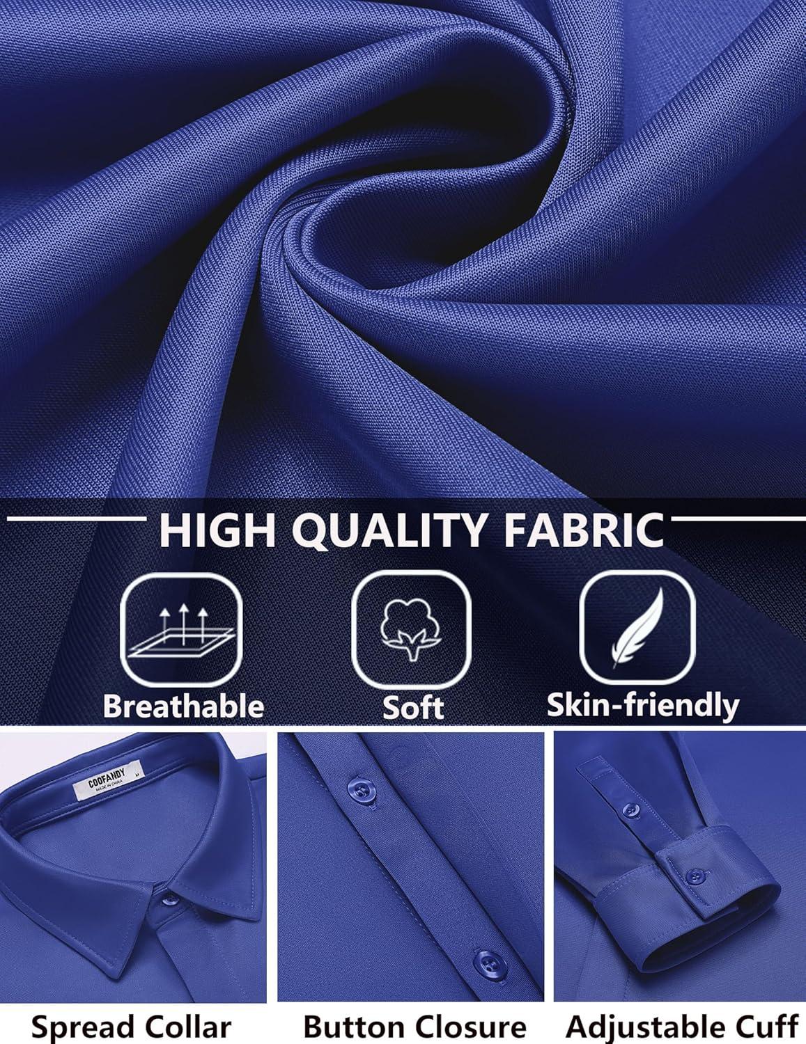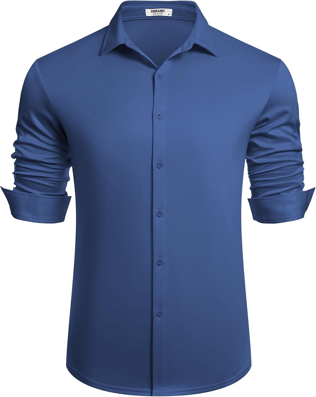 COOFANDY Men Long Sleeve Button Down Shirts Muscle Fit Dress Shirts Slim Fit Knit Shirts Camp Collar Shirts(Royal Blue)