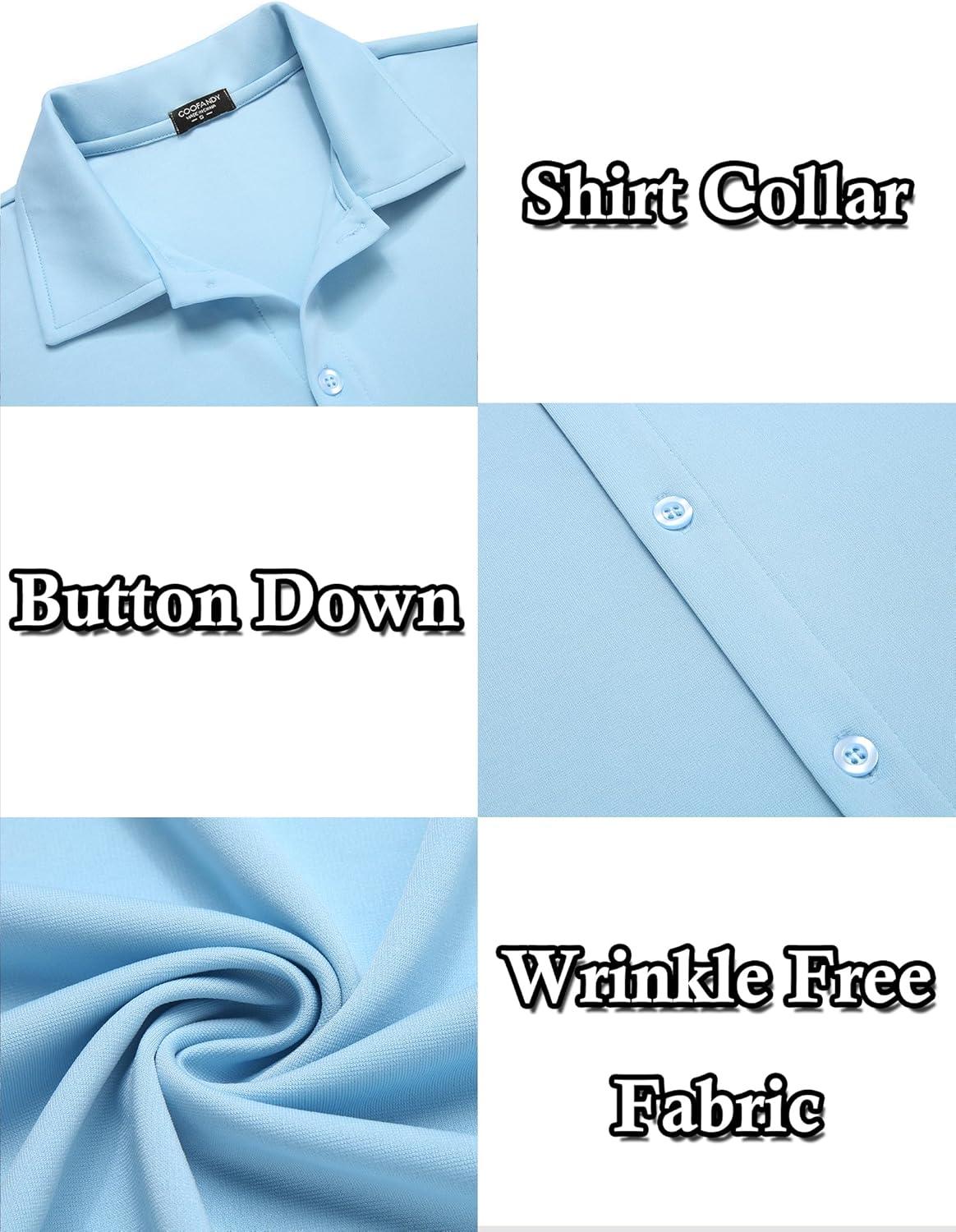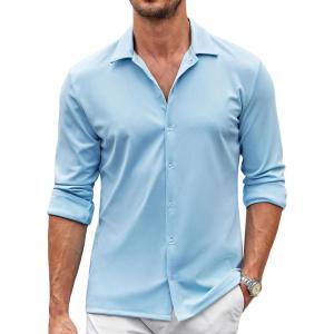 COOFANDY Men Long Sleeve Button Down Shirts Muscle Fit Dress Shirts Slim Fit Knit Shirts Camp Collar Shirts(Sky Blue)