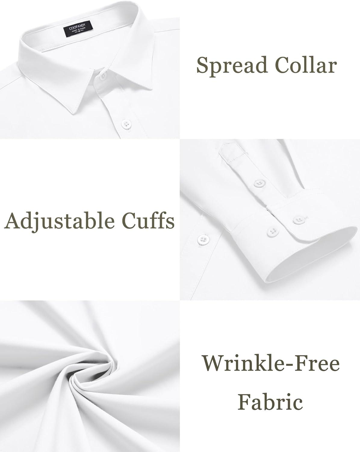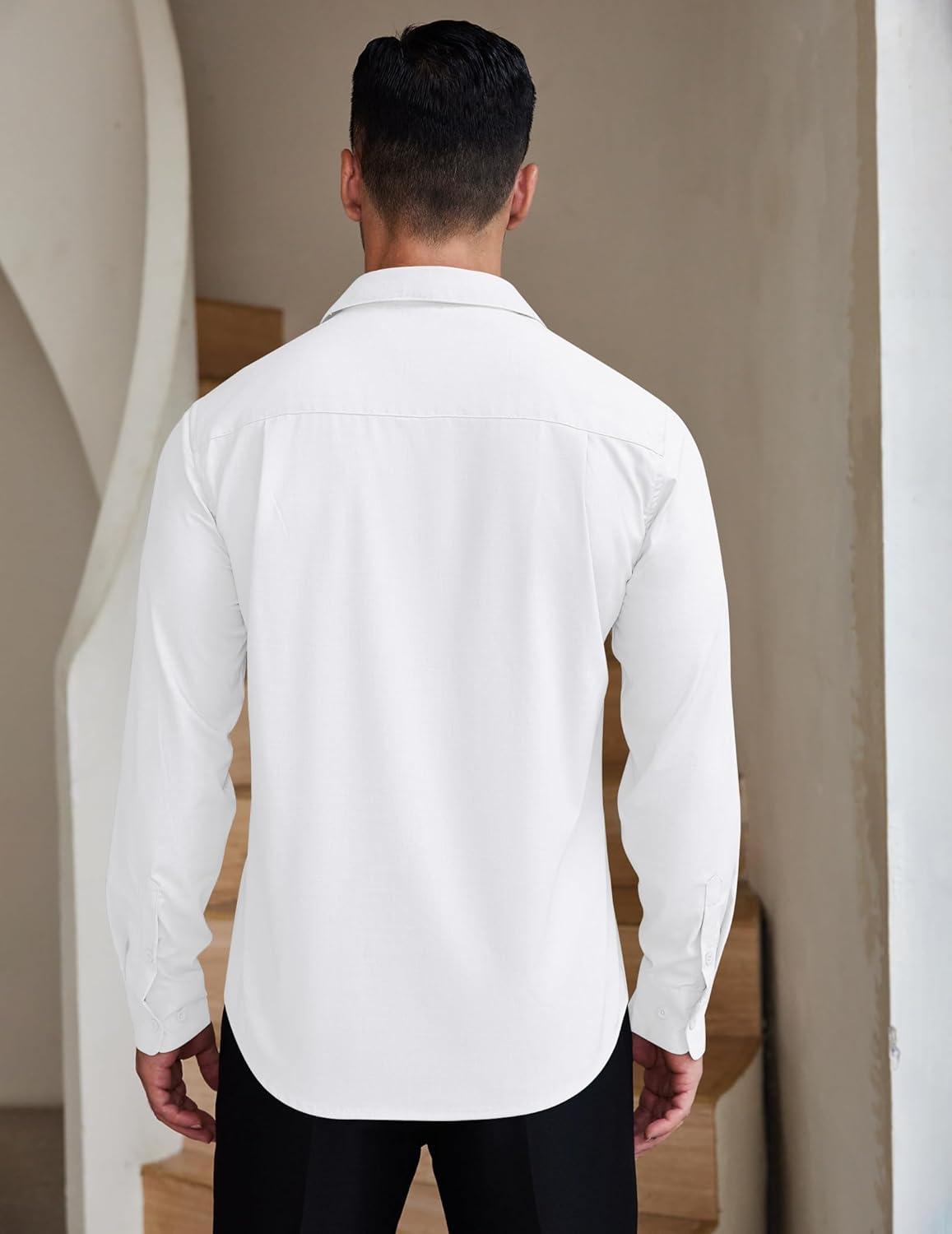 COOFANDY Men Long Sleeve Button Down Shirts Muscle Fit Dress Shirts Slim Fit Knit Shirts Camp Collar Shirts(White)