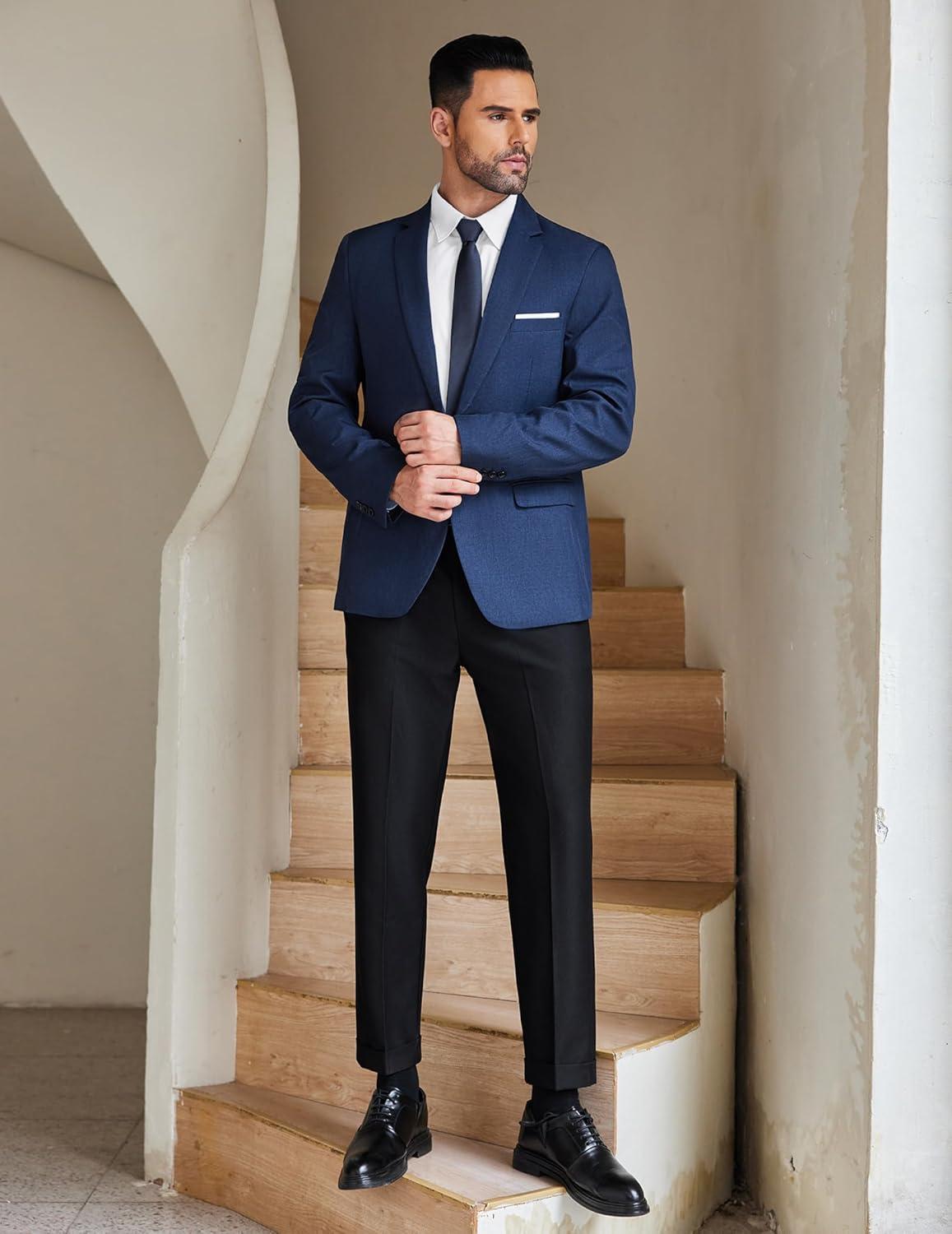 COOFANDY Men Long Sleeve Button Down Shirts Muscle Fit Dress Shirts Slim Fit Knit Shirts Camp Collar Shirts(Navy Blue)