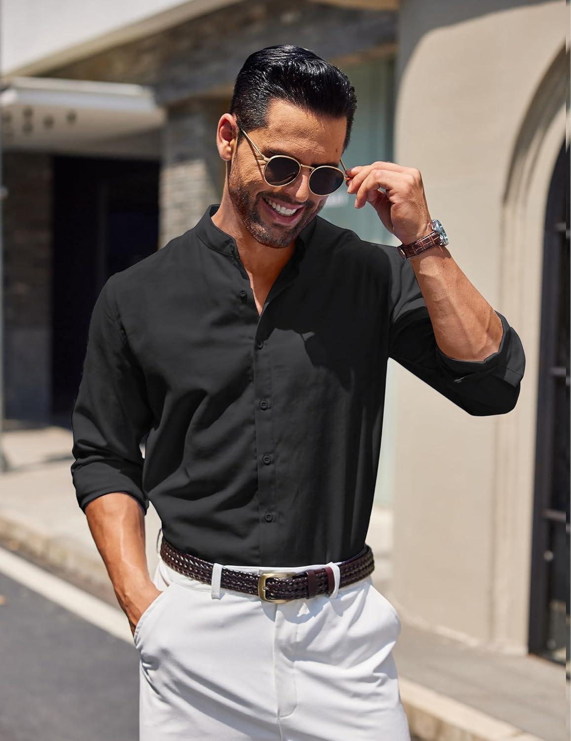 COOFANDY Men Long Sleeve Button Down Shirts Muscle Fit Dress Shirts Slim Fit Knit Shirts Camp Collar Shirts(P-black)