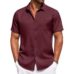 COOFANDY Men’s Knit Shirts Short Sleeve Casual Button Down Polo Shirt Summer Beach Vacation Shirts(Wine Red)