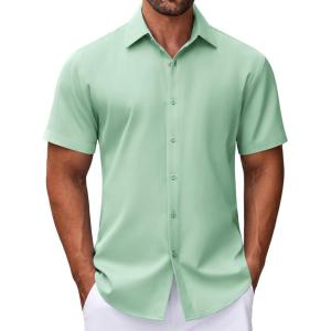 COOFANDY Mens Dress Shirts Button Down Short Sleeve Shirt Summer Shirts Business Casual Wedding Shirt(Light Green)