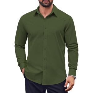COOFANDY Mens Dress Shirts Long Sleeve Casual Button Down Shirts Formal Business Shirt(Army Green)