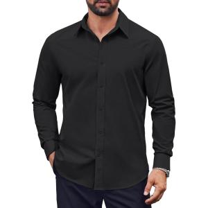 COOFANDY Mens Dress Shirts Long Sleeve Casual Button Down Shirts Formal Business Shirt(Black)