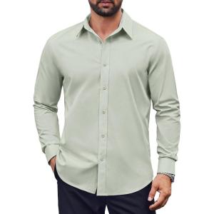 COOFANDY Mens Dress Shirts Long Sleeve Casual Button Down Shirts Formal Business Shirt(Light Green)