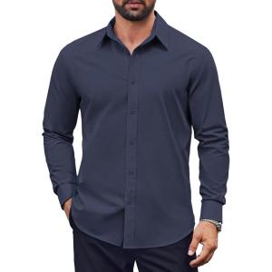 COOFANDY Mens Dress Shirts Long Sleeve Casual Button Down Shirts Formal Business Shirt(Navy Blue)