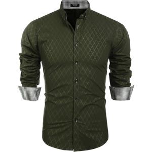 COOFANDY Men’s Long Sleeve Wrinkle Free Dress Shirts Inner Contrast Business Casual Button Down Shirt(Army Green)