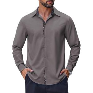 COOFANDY Men’s Long Sleeve Wrinkle Free Dress Shirts Inner Contrast Business Casual Button Down Shirt(Dark Grey)