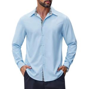 COOFANDY Men’s Long Sleeve Wrinkle Free Dress Shirts Inner Contrast Business Casual Button Down Shirt(Light Blue)